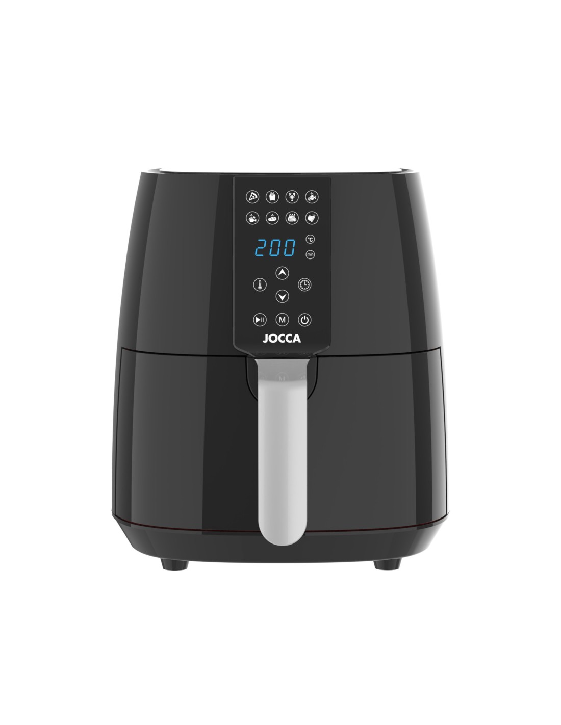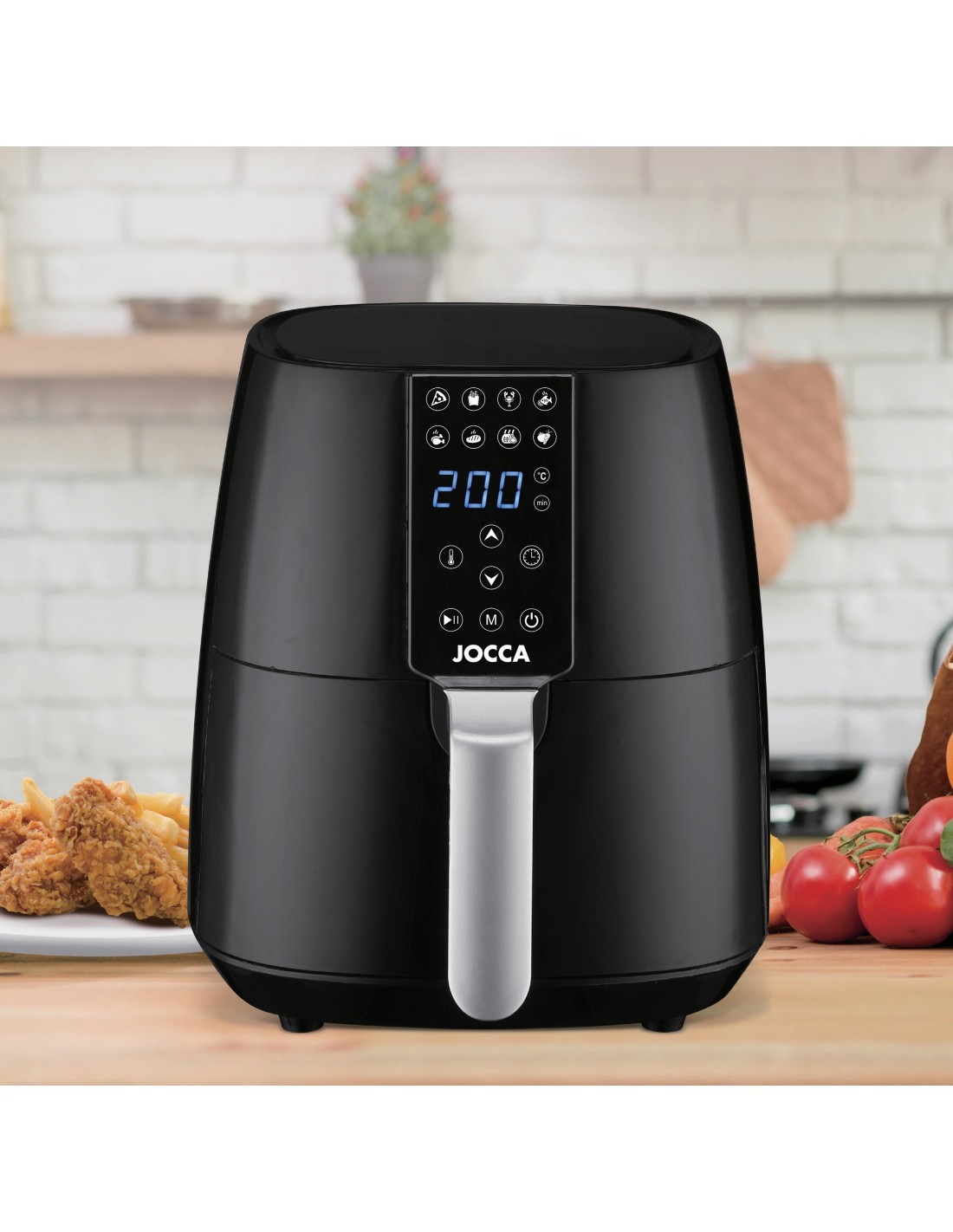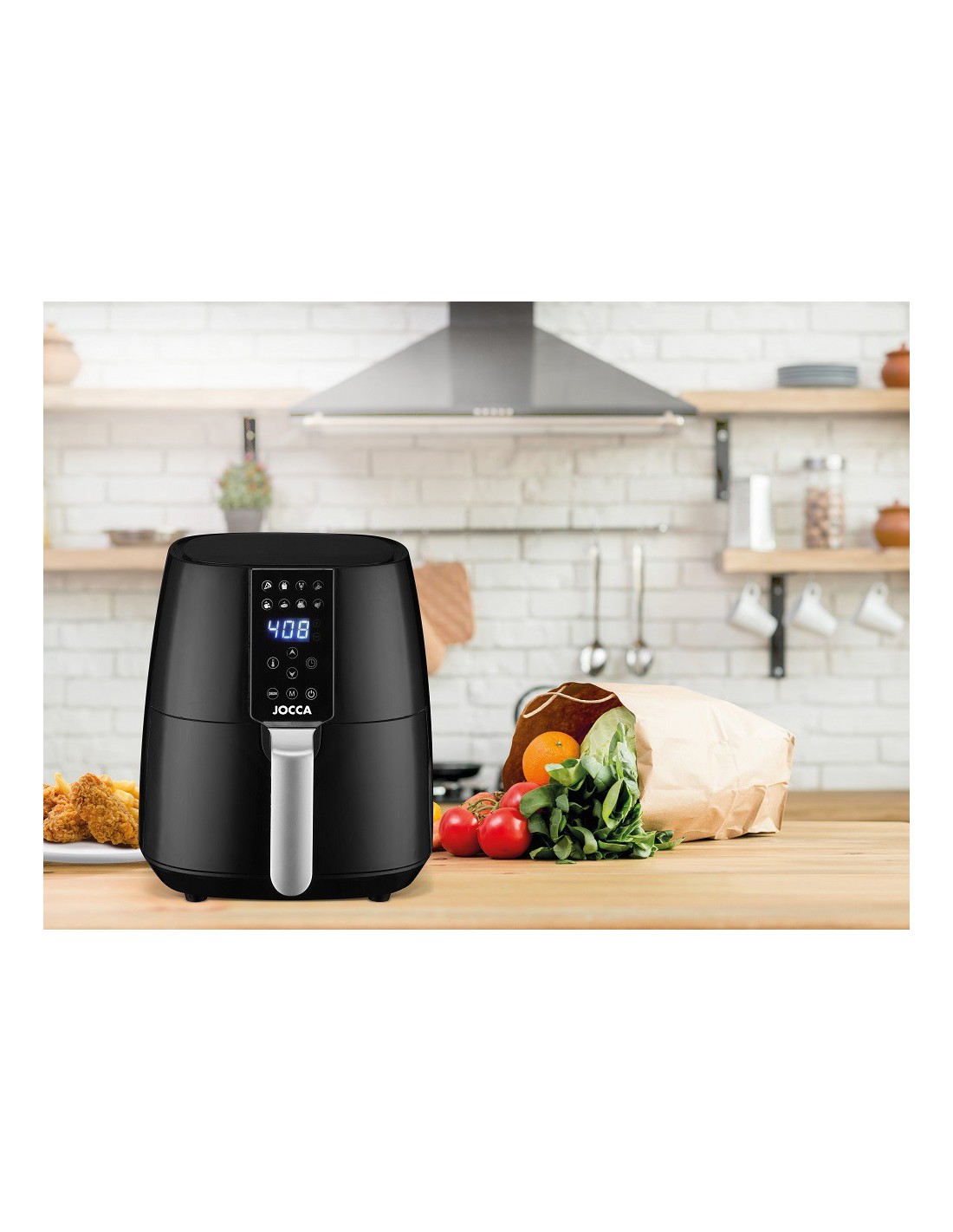 La freidora de aire caliente de 3.8L de Jocca es capaz de cocinar infinidad de recetas, sanas y deliciosas, que convertirán cada comida y cada cena en los momentos más esperados del día. Es perfecta para cocinar de manera más sana y económica, sólo es necesario utilizar una cucharada de aceite.