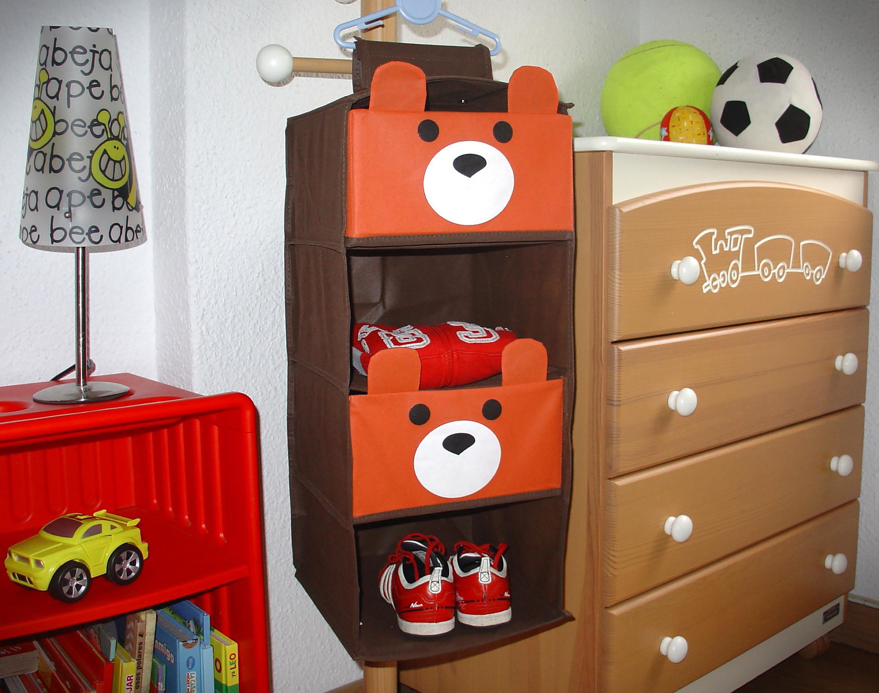 El set de organización Jocca con gran capacidad de almacenaje incluye 2 cajones con forma de osito, panda o pollito y 1 organizador de 4 baldas a juego. Una original idea para que los niños aprendan de forma divertida a ordenar y guardar sus juguetes, zapatos, ropa y mucho más.