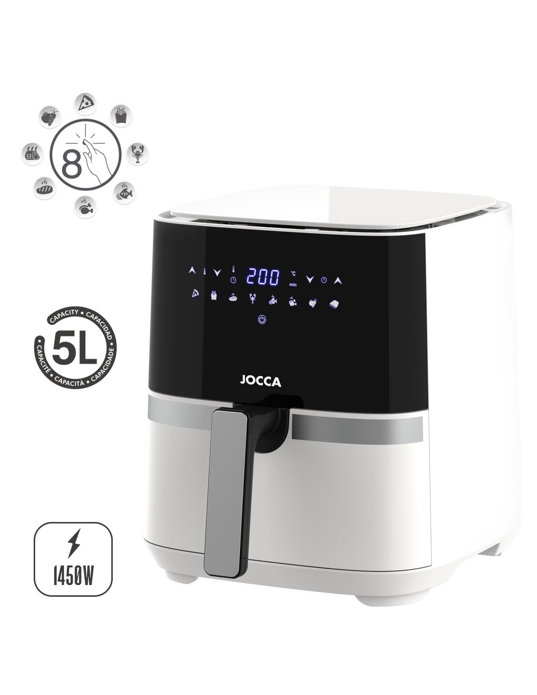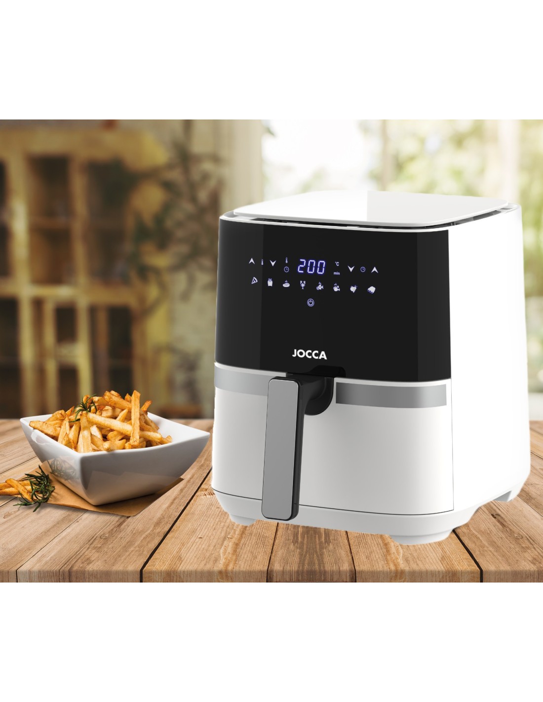 La freidora sin aceite de 5L de Jocca es capaz de cocinar infinidad de recetas, sanas y deliciosas, que convertirán cada comida y cada cena en los momentos más esperados del día. Es perfecta para cocinar de manera más sana y económica, sólo es necesario utilizar una cucharada de aceite.