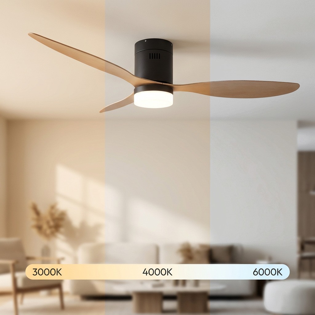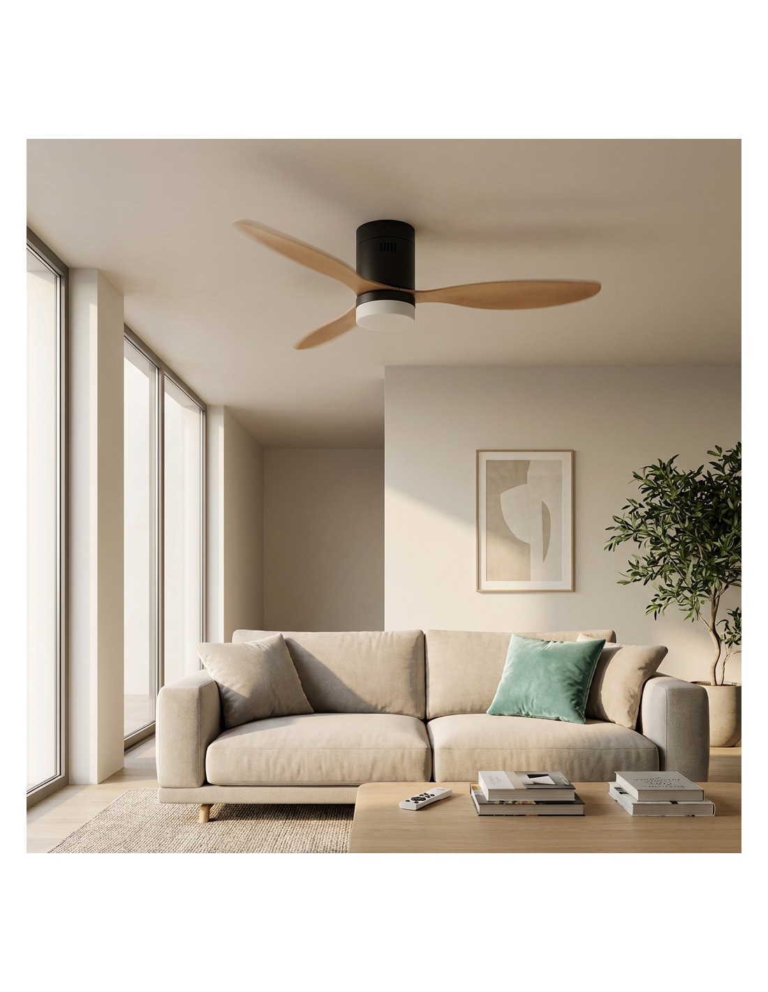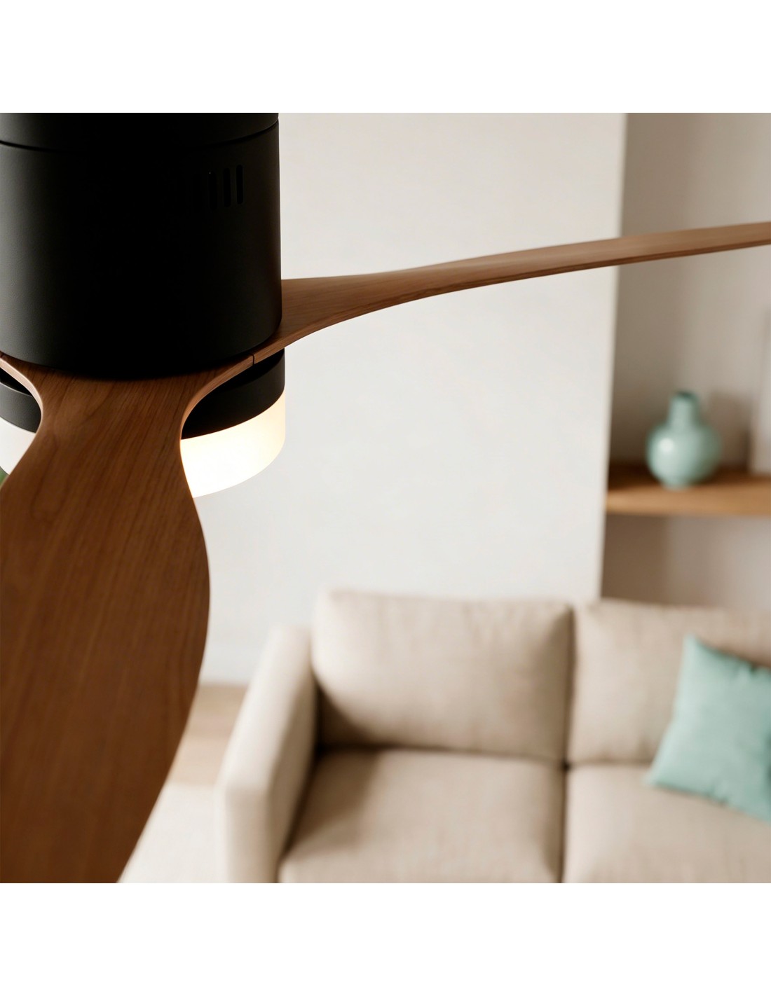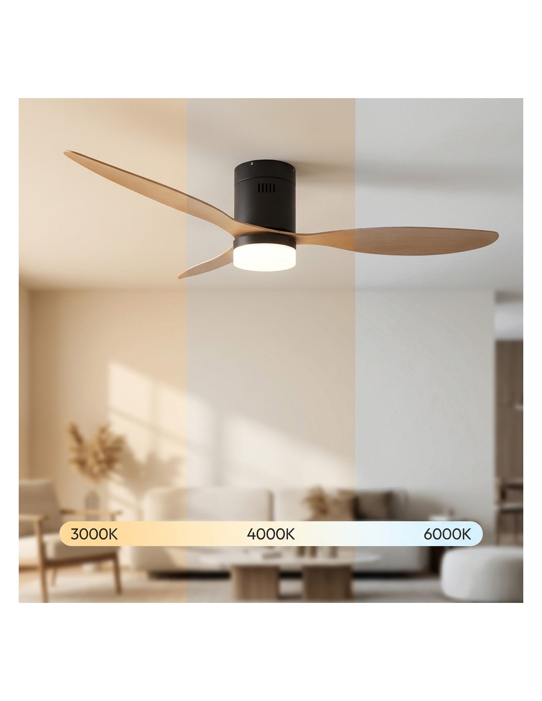 Ventilador de techo Jocca con motor DC silencioso, luz LED integrada y diseño minimalista para todo el año.