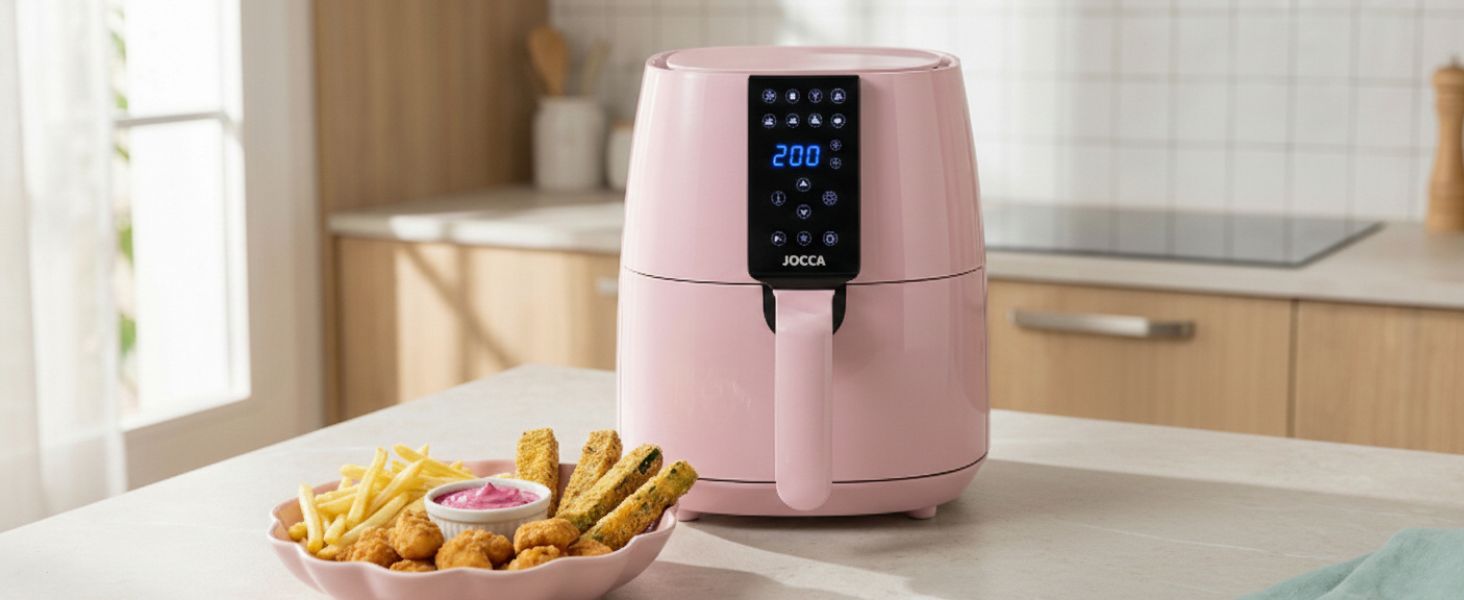 Haz espacio en tu cocina para esta freidora sin aceite rosa de JOCCA y descubre una nueva forma de disfrutar de tus recetas favoritas con menos grasa, sin complicaciones y con mucho estilo. Ideal para ti o como regalo especial para quienes aman cocinar (¡o no tanto!).