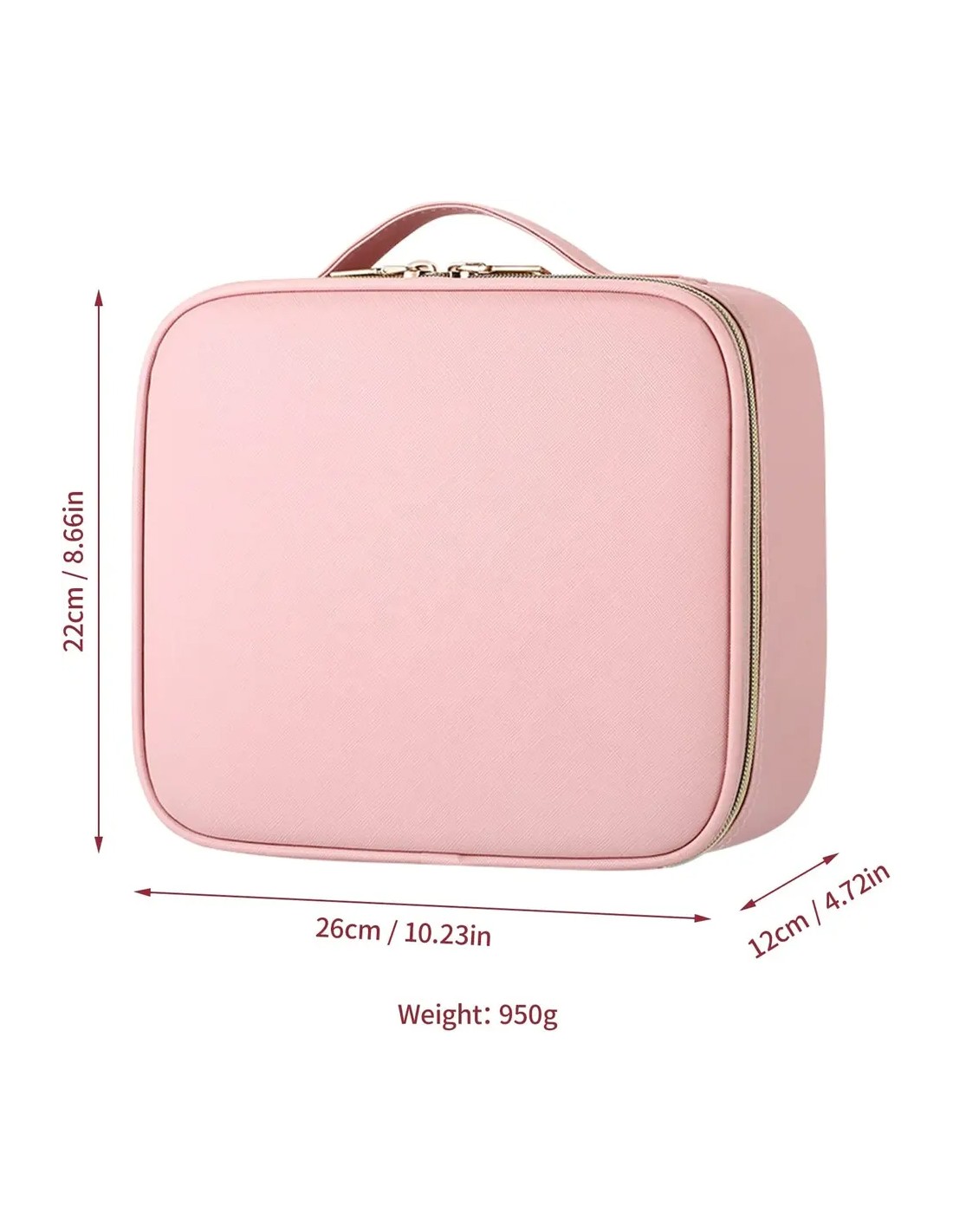 Maletín de maquillaje portátil con espejo LED integrado, pensado para una iluminación precisa y una organización perfecta en casa o de viaje.