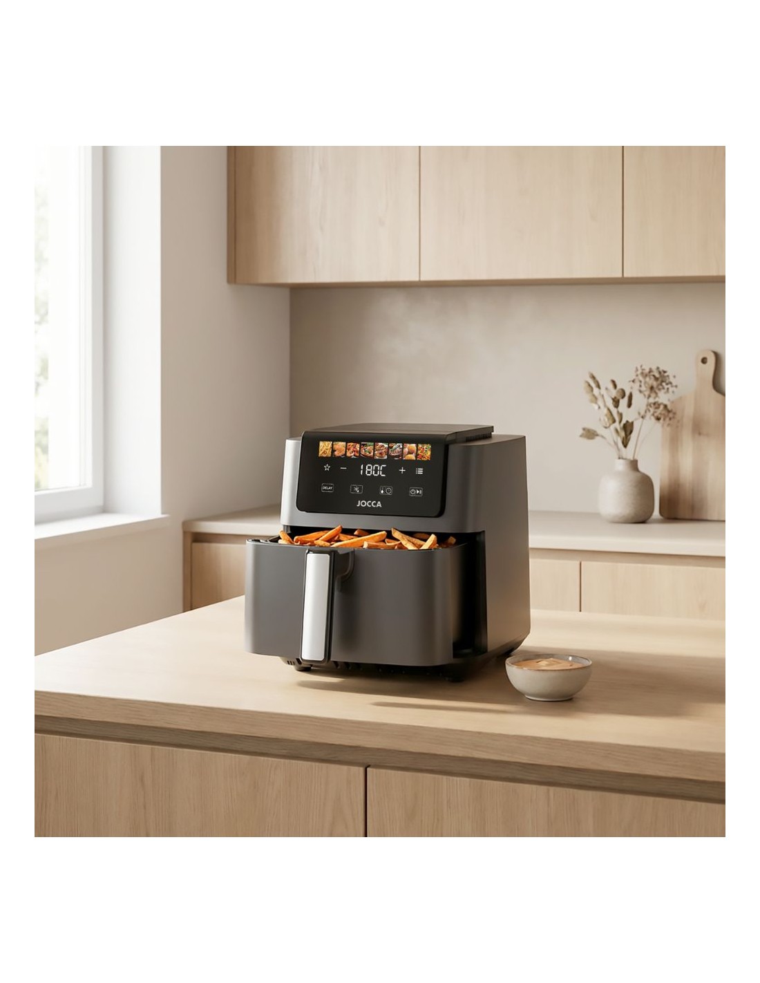 La freidora de aire 6.5L Jocca es perfecta para cocinar de forma saludable, rápida y sin aceite. Su gran capacidad y potencia de 1700W permiten preparar recetas para toda la familia con resultados crujientes y deliciosos.