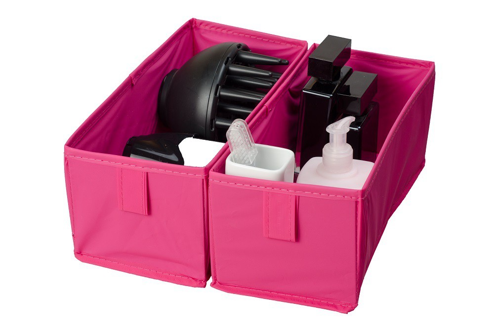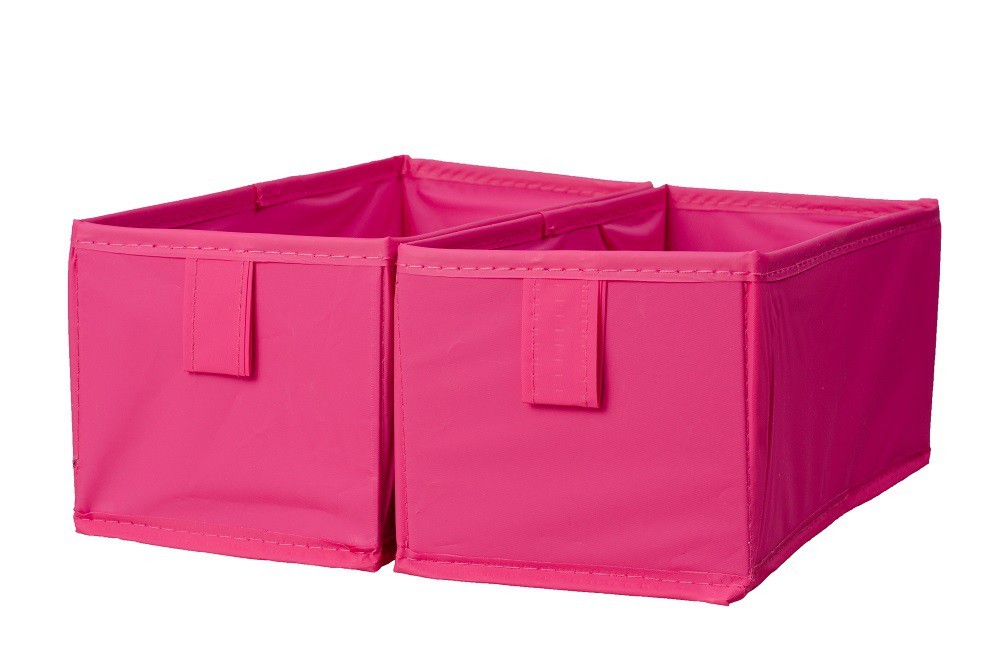Estos Cajones para zapateros de tela darán un toque moderno a tu armario o vestidor estan disponibles en fucsia y en gris.