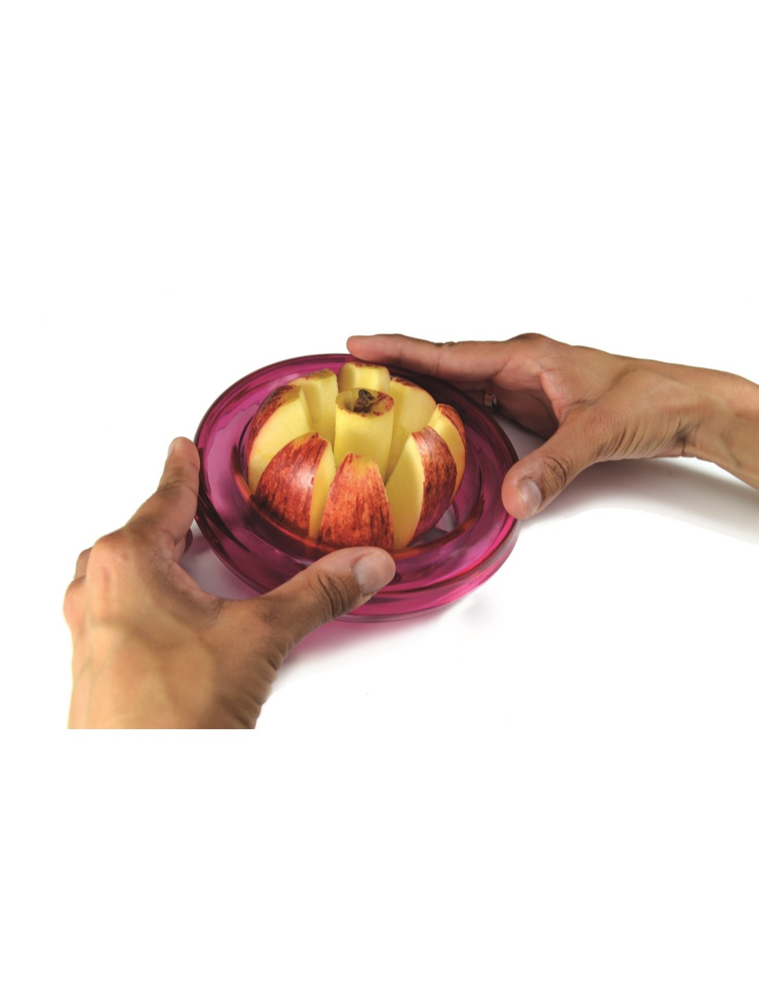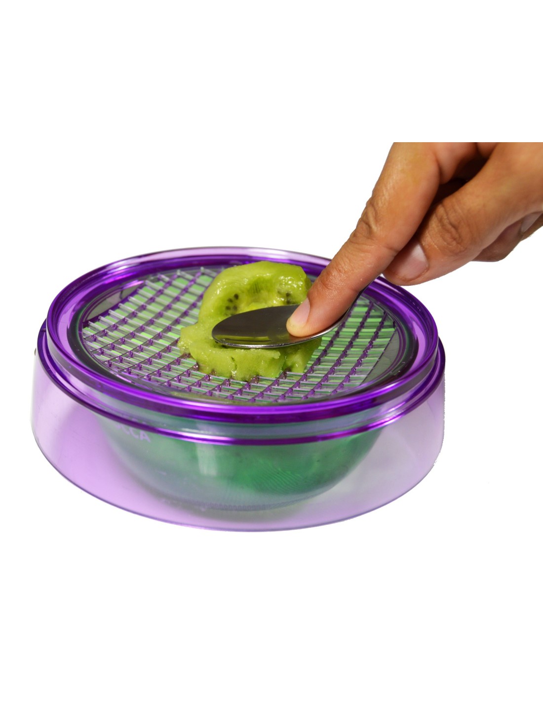 Mortero, cortador en malla, exprimidor, cortador de manzanas, rallador, utensilio para coger aperitivos, bol. Todas estas funciones en un único utensilio para tu hogar.