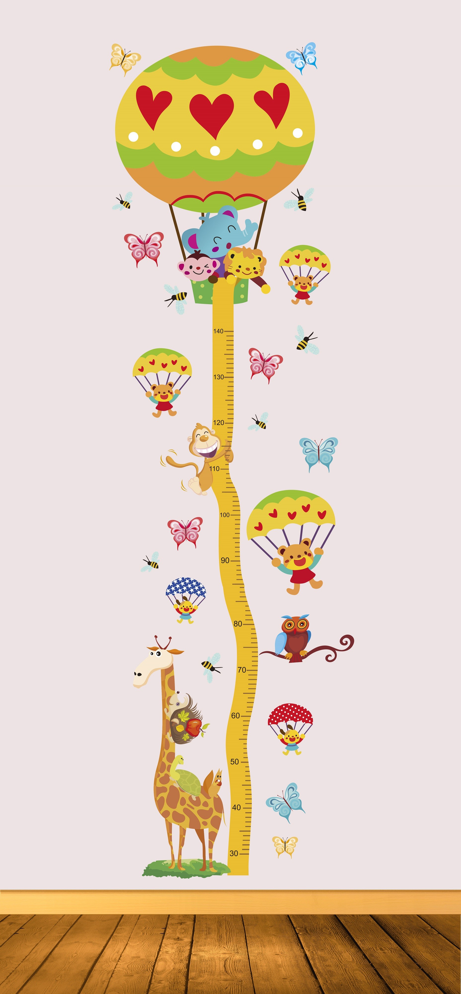 Vinilo de Jocca con escala de altura que te permite ver como crecen día a día que es, además, una decoración ideal. Puedes adherirlo de forma sencilla a cualquier superficie limpia y plana como las paredes, muebles, puertas o espejos.