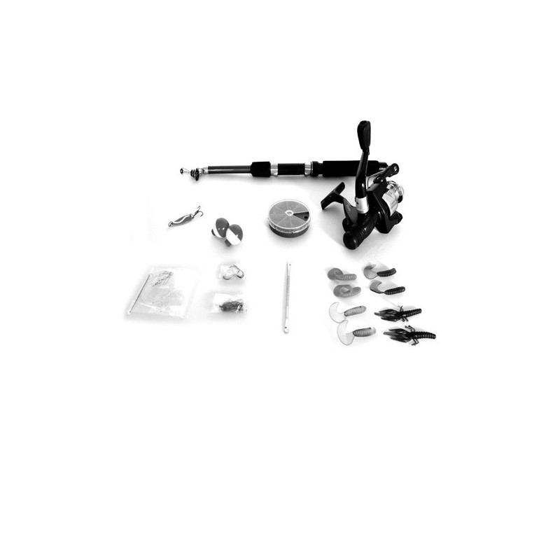 Denne Set til fiskeri Inkluderer 180cm længde folding fiskestang, roterende teskefuld, boldflåd, bly, hjul, sabiki kroge, kroge, tryk kroge, bløde lokker, det vil sige det er et komplet sæt.