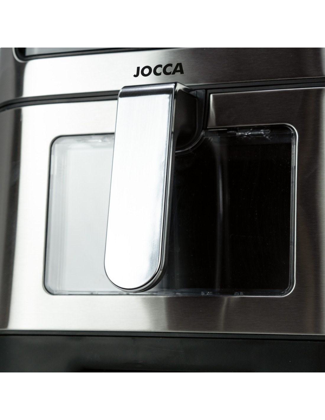 Med 8L Oilless Fryer med vindue af Jocca Du kan lave mad med mindre olie og sundere: Du kan kun tilføje lidt eller endda noget og nyde din mad med mindre fedt og om et par minutter. Ikke afstå fra fritters! Du kan stege, stege, gratin, varme og optøere alle slags mad sunde og hurtige.