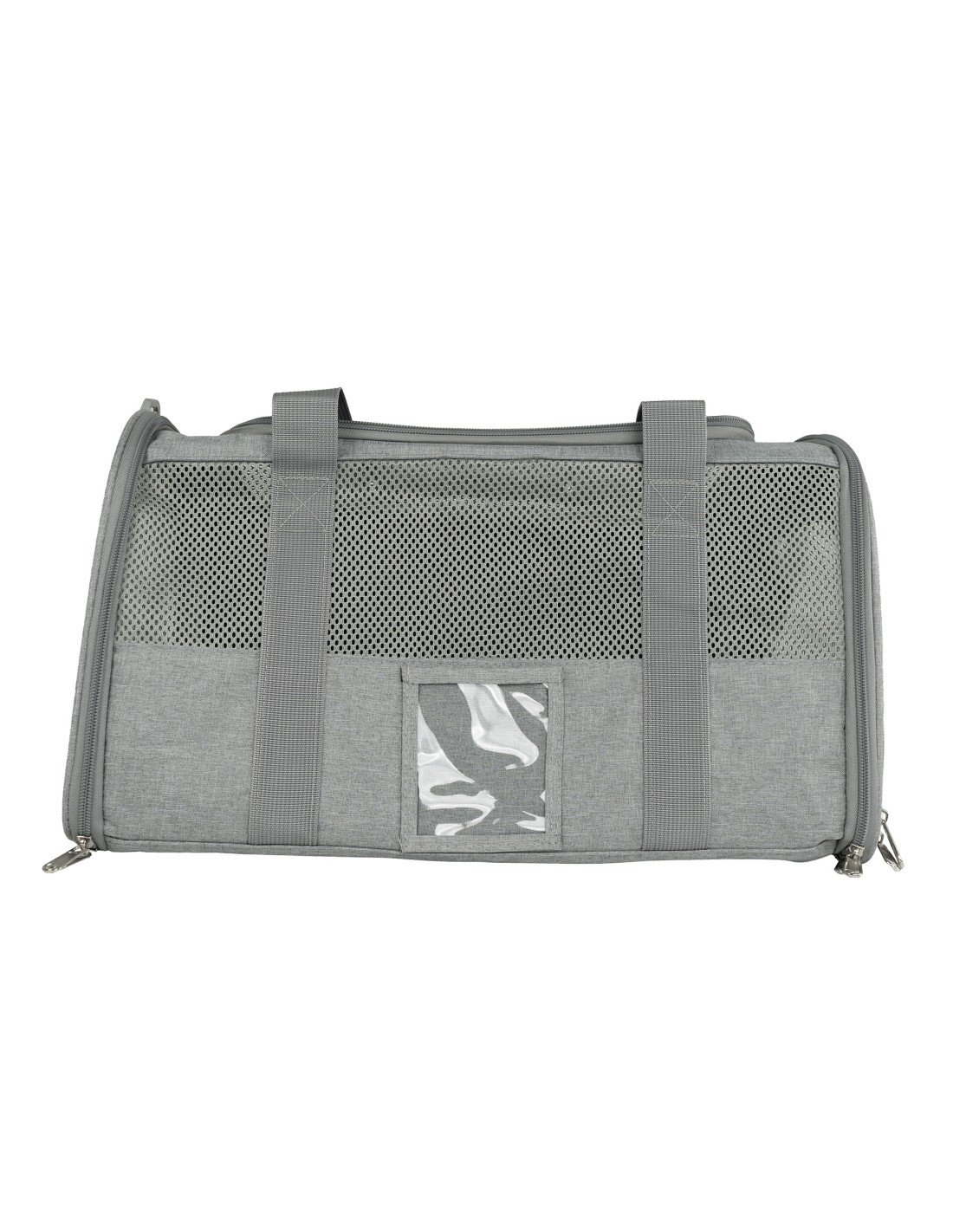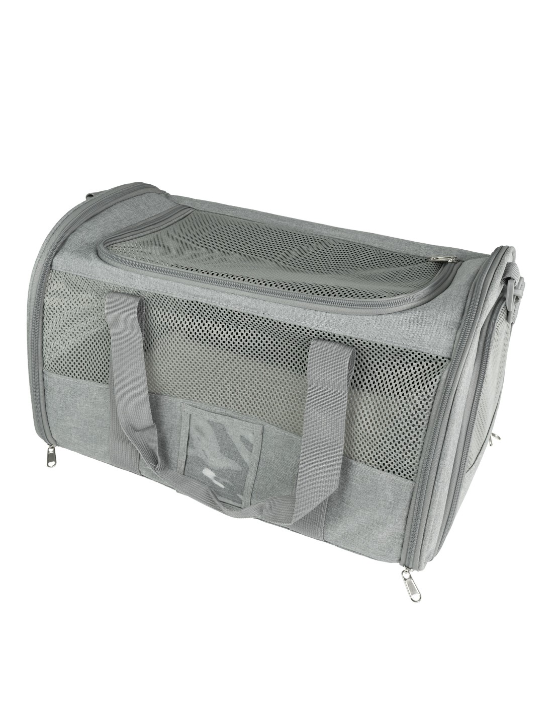 Dimensioner 46 × 28 × 28cm, dette Kompakt og letvægts transport Det er velegnet til små og mellemstore kæledyr. Dens design omfatter Tre åbninger (øvre, forreste og laterale) Med sikre lynlåse letter de adgang fra forskellige vinkler og forbedrer indendørs ventilation, hvilket skaber et køligere og fedeste rum til din hårede ledsager.