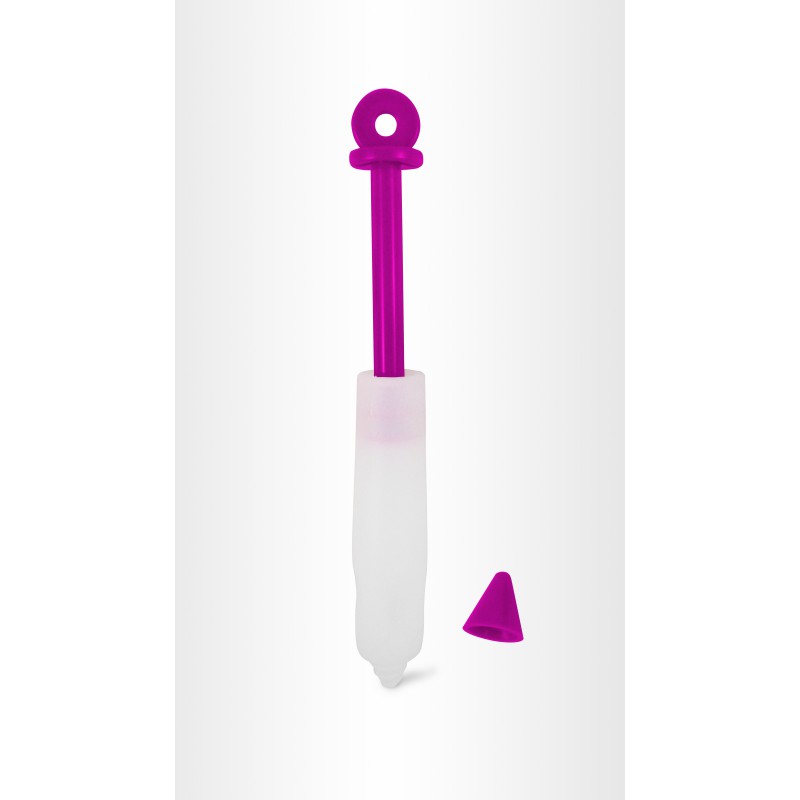 For at Dekorer Cupcakes, Kager, Cookies eller Cake Pops Perler med to forskellige dyser, så tykkelsen varierer. For at udfylde pennen skal du indtaste den blanding af den blanding eller mad, du vil have, og trækkes ud fra stemplet, på denne måde vil penen blive fyldt hurtigt. Hold derefter varen som om det var en kuglepen og tryk på silikonekroppen for at dekorere perfekt.