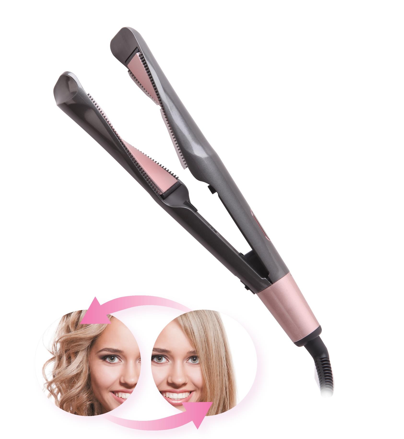 Eisen und Lockenwickler 2 in 1 mit Keramikplatten und LED-Viewer