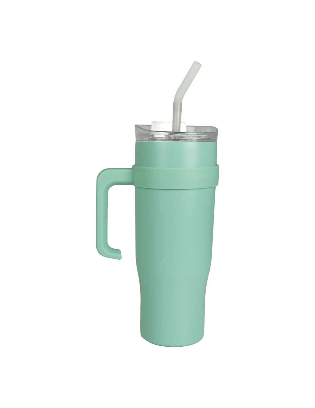 Das Glas enthält ein Ergonomischer seitlicher Griff, was den Transport und den Griff erleichtert, auch wenn es voll ist. Euer eure Strohhalm aus Edelstahl Sie können bequem trinken, ohne dass das Glas neigen müssen, um ideal, um vor dem Computer zu arbeiten, zu studieren oder zu fahren.