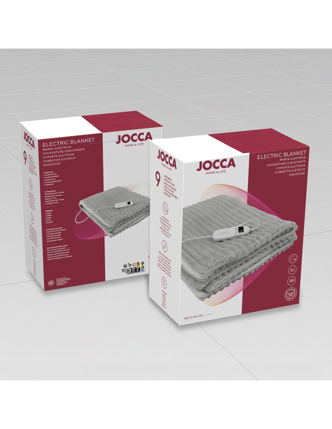 Découvrir couverture électrique Jocca parfait pour combattre le froid avec Confort thermique maximum Et sans tirer votre facture de lumière. Disponible en Trois versions différentes, chacun avec des finitions exclusives et Tissus ultrasifs, tout avec Dimensions généreuses de 180 x 130 cm, Pouvoir de 160w, Minuterie programmable et 9 niveaux de température.