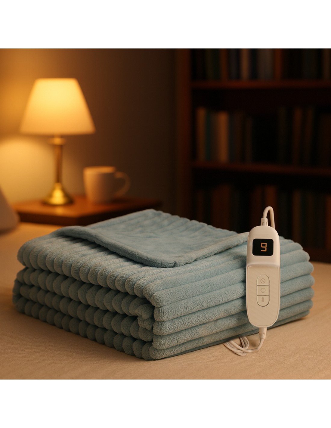 Couverture électrique en flanelle rayée, douce, confortable et double face.