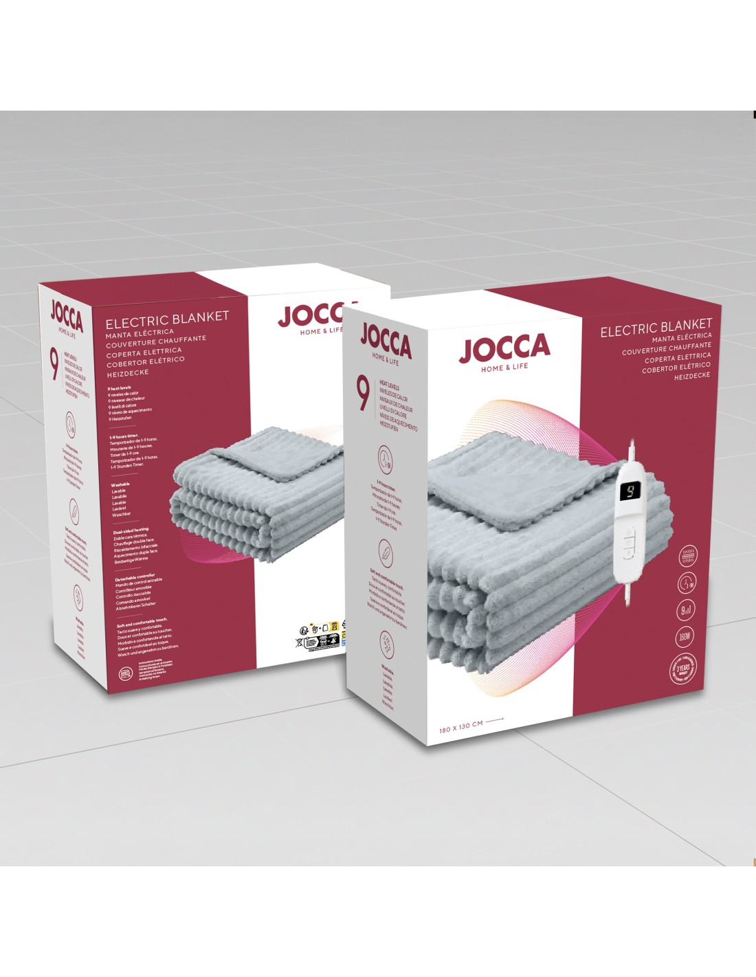 Découvrir couverture électrique Jocca parfait pour combattre le froid avec Confort thermique maximum Et sans tirer votre facture de lumière. Disponible en Trois versions différentes, chacun avec des finitions exclusives et Tissus ultrasifs, tout avec Dimensions généreuses de 180 x 130 cm, Pouvoir de 160w, Minuterie programmable et 9 niveaux de température.