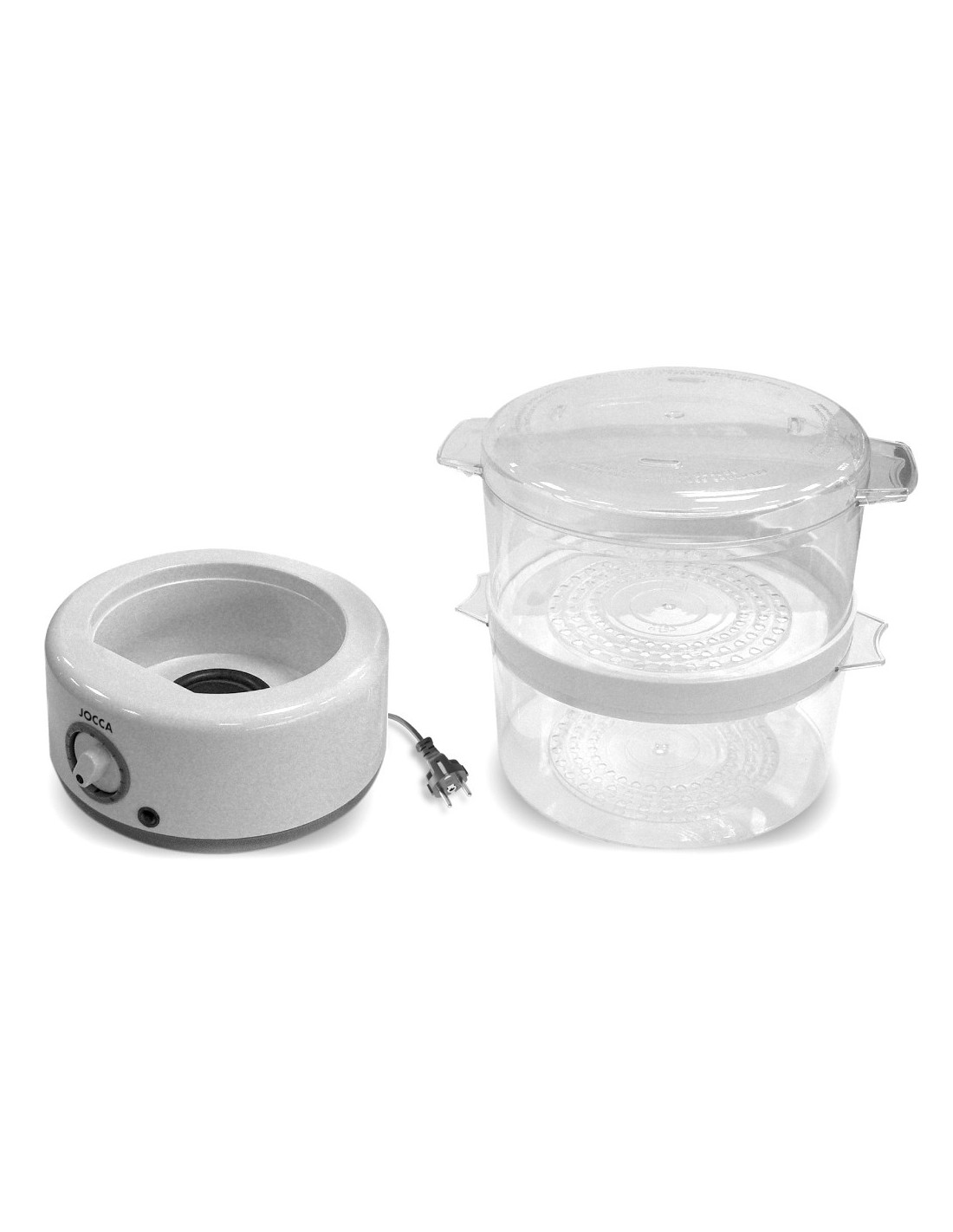Profitez d'un saine alimentation et riche, en gardant toutes les vitamines de la nourriture avec les vapeur Jocca avec trempé 60 minutes, couvercles amovibles et plateaux.