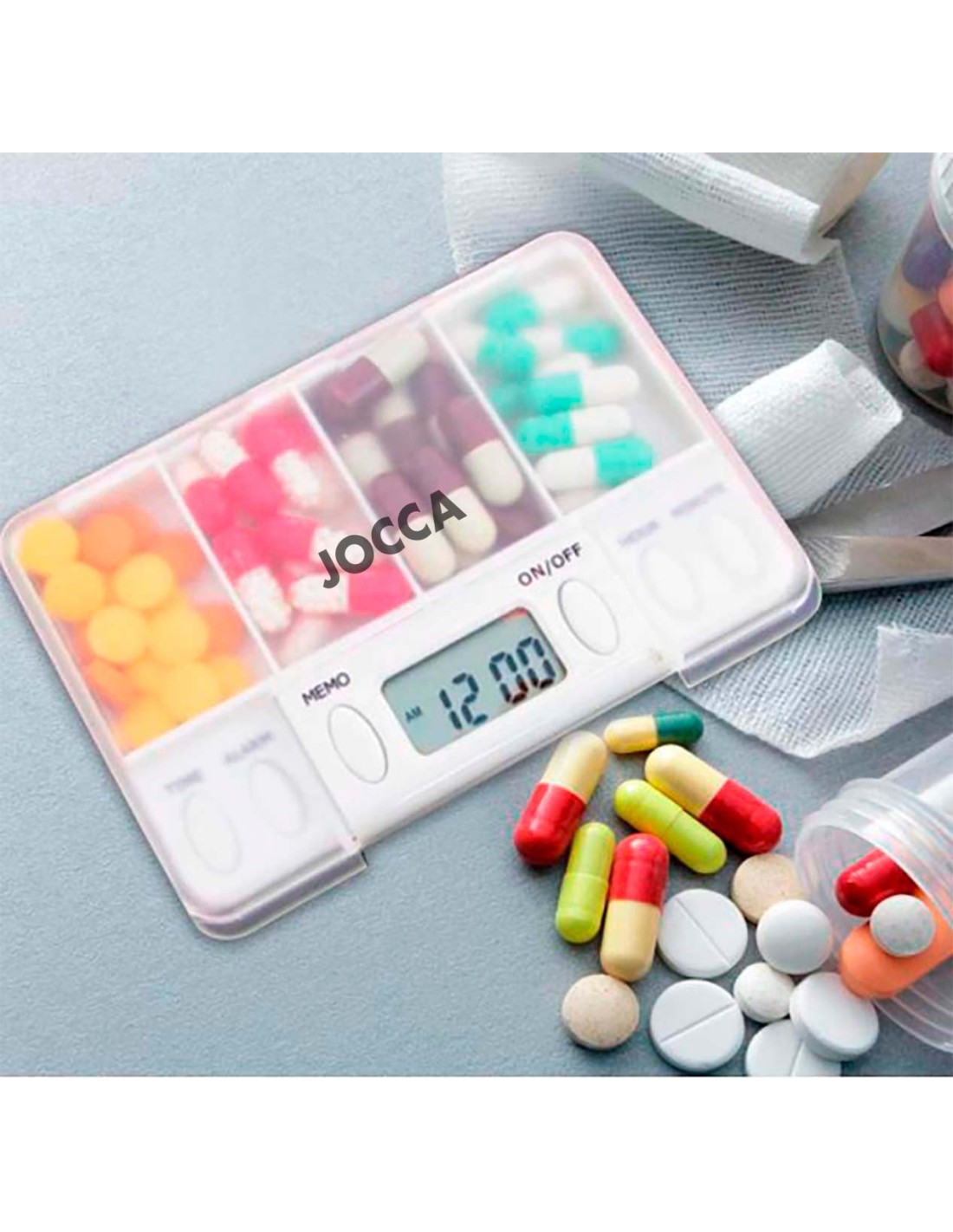 Merci pâtisserie électronique Jocca il n'y a plus d'excuse pour prendre le médicament au moment exact, car il vous dit quand vous devriez prendre le médicament. Compte avec 4 compartiments pour tablettes et 8 alarmes par jour avec 5 sons différents pour distinguer chaque alarme.