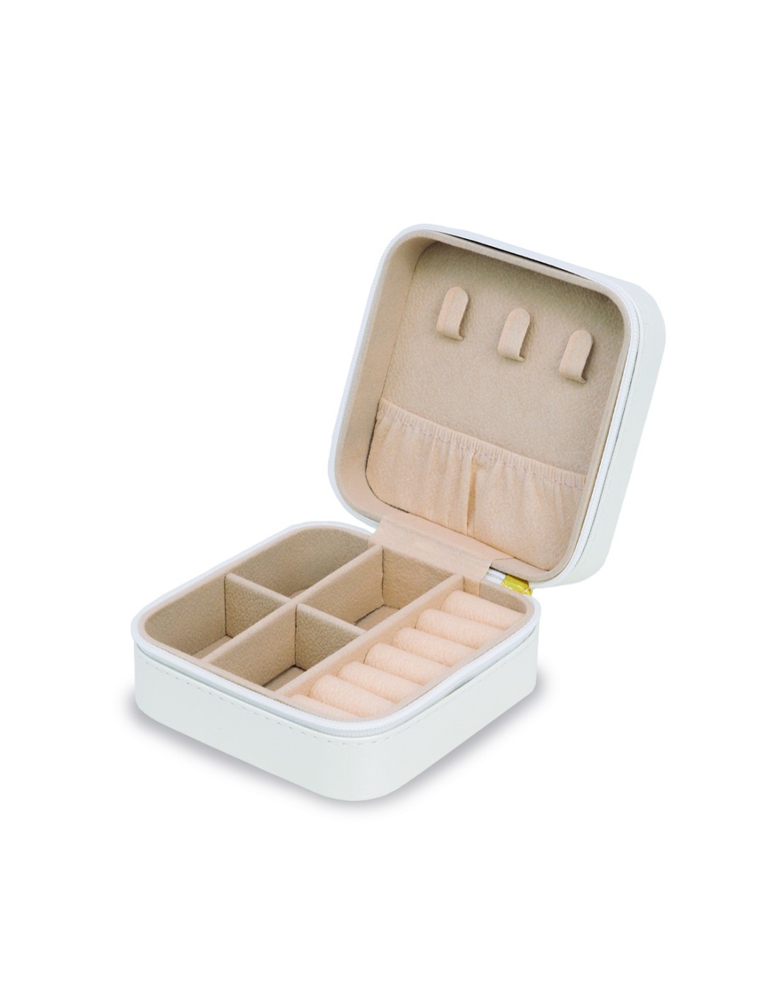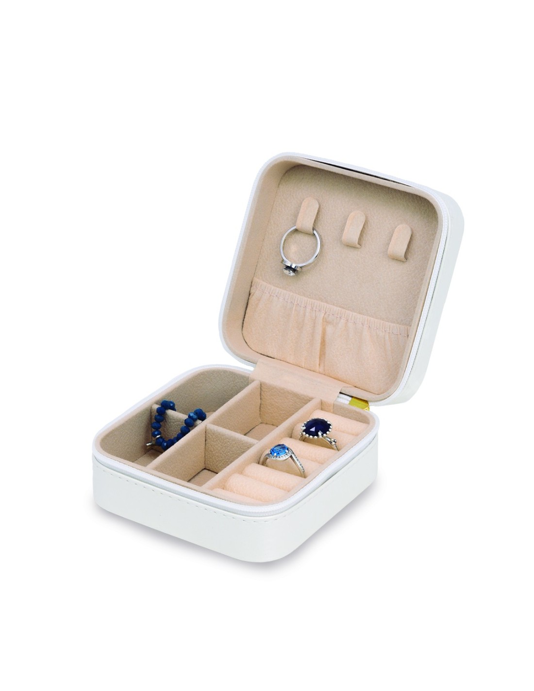 The Jeweler has spare compartments and puts to adapt to all needs. In total it has space for 3 necklaces, 6 rings and 4 compartments to store earrings, bracelets, watches or other accessories.