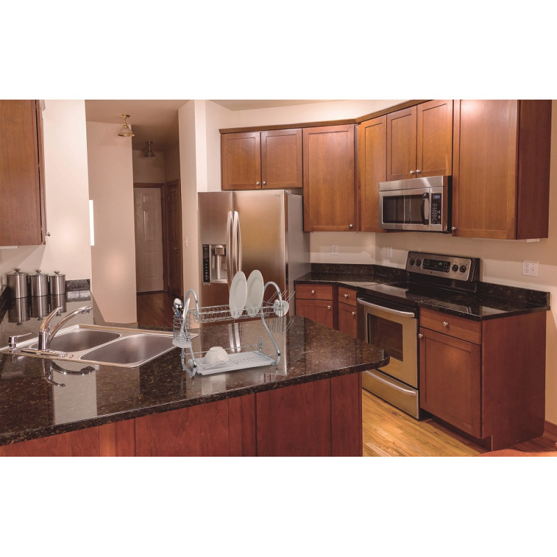 The JOCCA Two Tier Dishrack has a plenty of drying space, so you can do big batches of washing up in one go. The dish rack also has a separate section for cutlery and hooks for glasses or cups, letting everything drip dry more easily. It has a drip tray underneath to protect your surfaces.