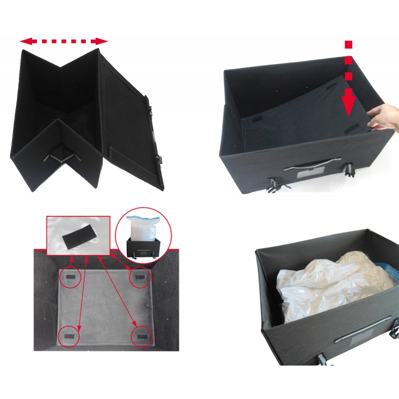 Economisez votre espace avec cette malle très pratique Prête à remplir et à ranger Grande capacité de rangement Réduit jusqu'à 75% de volumeDimensions malle: 53*38*30 cm Dimensions sac: 90*100*38 cm Toile75 gr