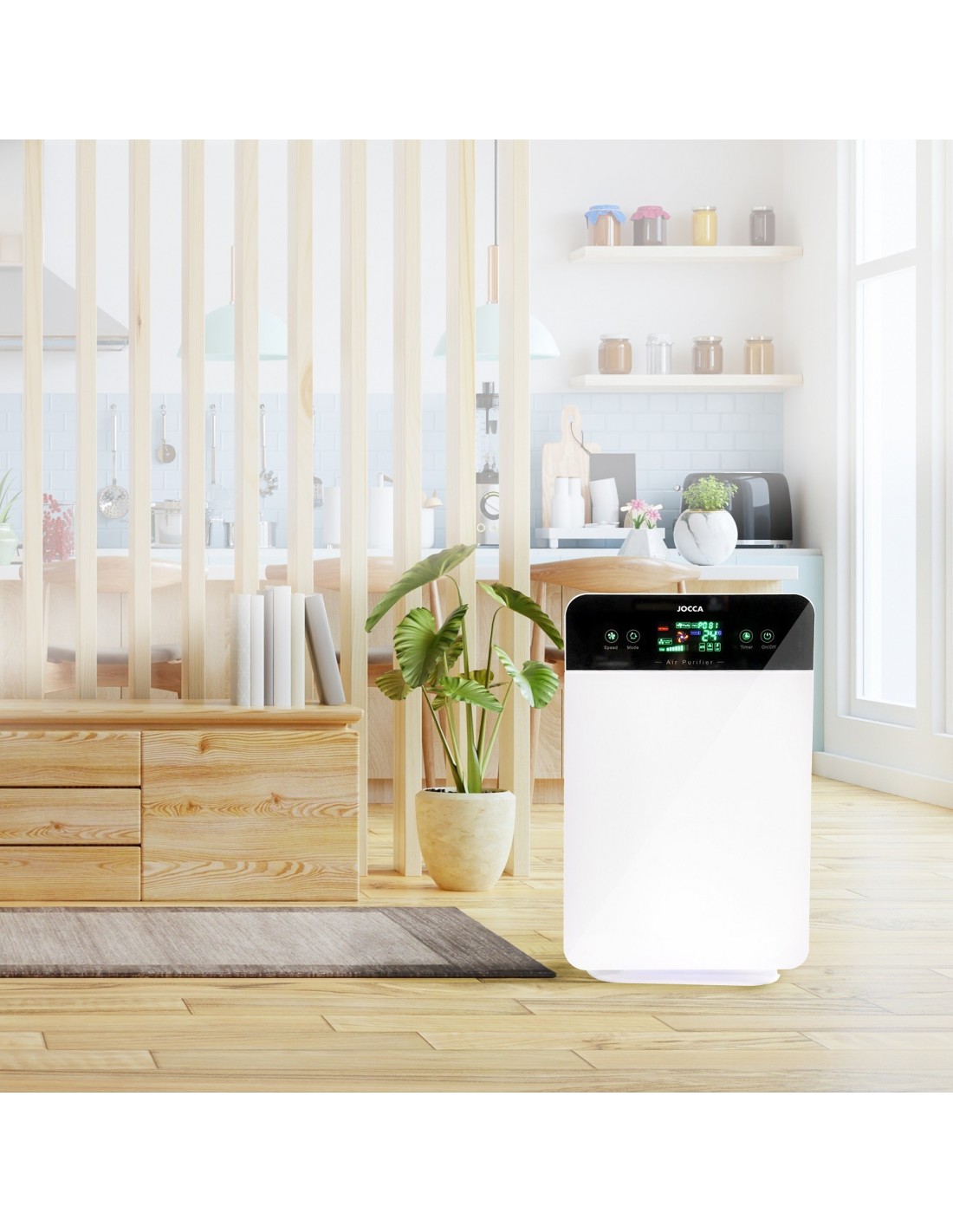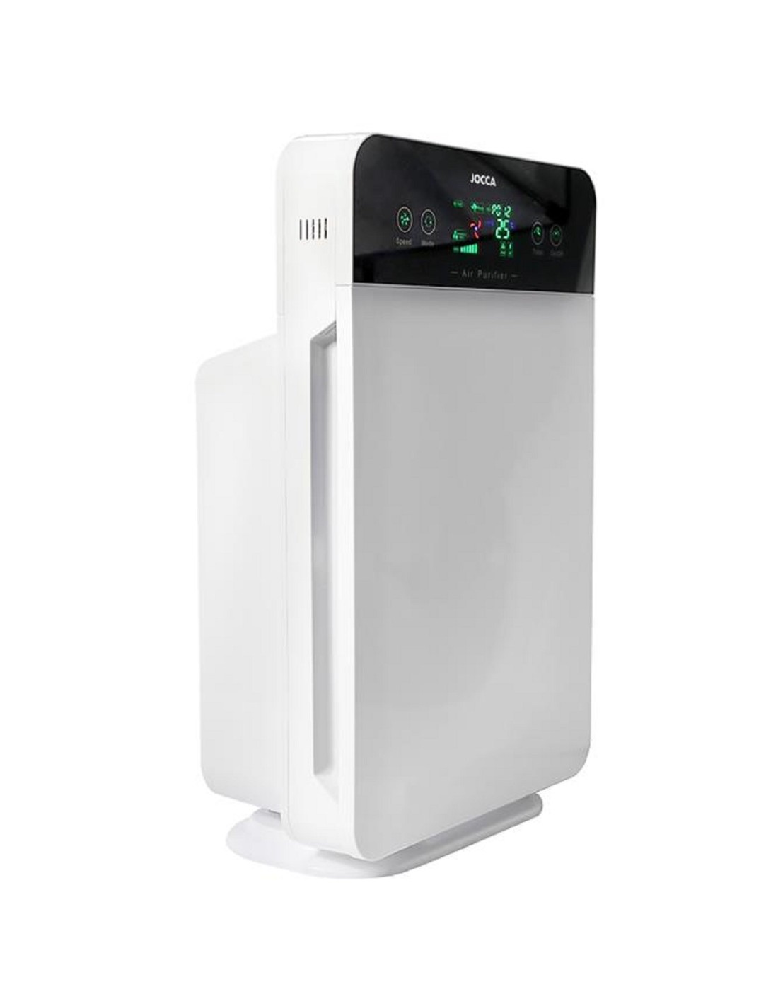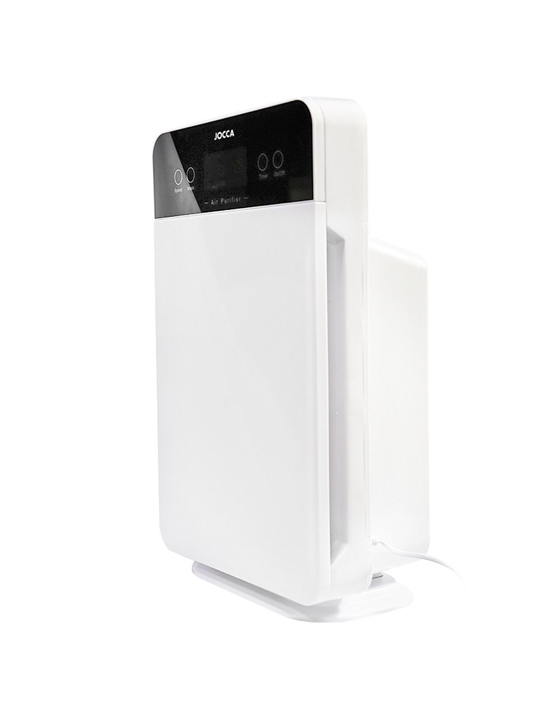Hármas elődöntő szűrővel, aktív szén és HEPA 13, alégtisztítóJoccaAz allergének, a pollen, a por, a füst, a csírák és a vírus elkészítése és megszüntetése negatív ionokat generál a beltéri levegő tisztításához és a levegő minőségének javításához, mivel a környezetben csökkenti a környezetben az egészségre vonatkozó káros pozitív ionok mennyiségét. Gyorsan megszünteti az illékony szerves vegyületeket, például a formaldehidet, a toluolot, a hidrogén-szulfidot, a benzol-klórot és a levegőben lévő egyéb szennyező anyagokat, mivel UV-fénye is, amely mélyebb és teljesebb tisztítást biztosít.