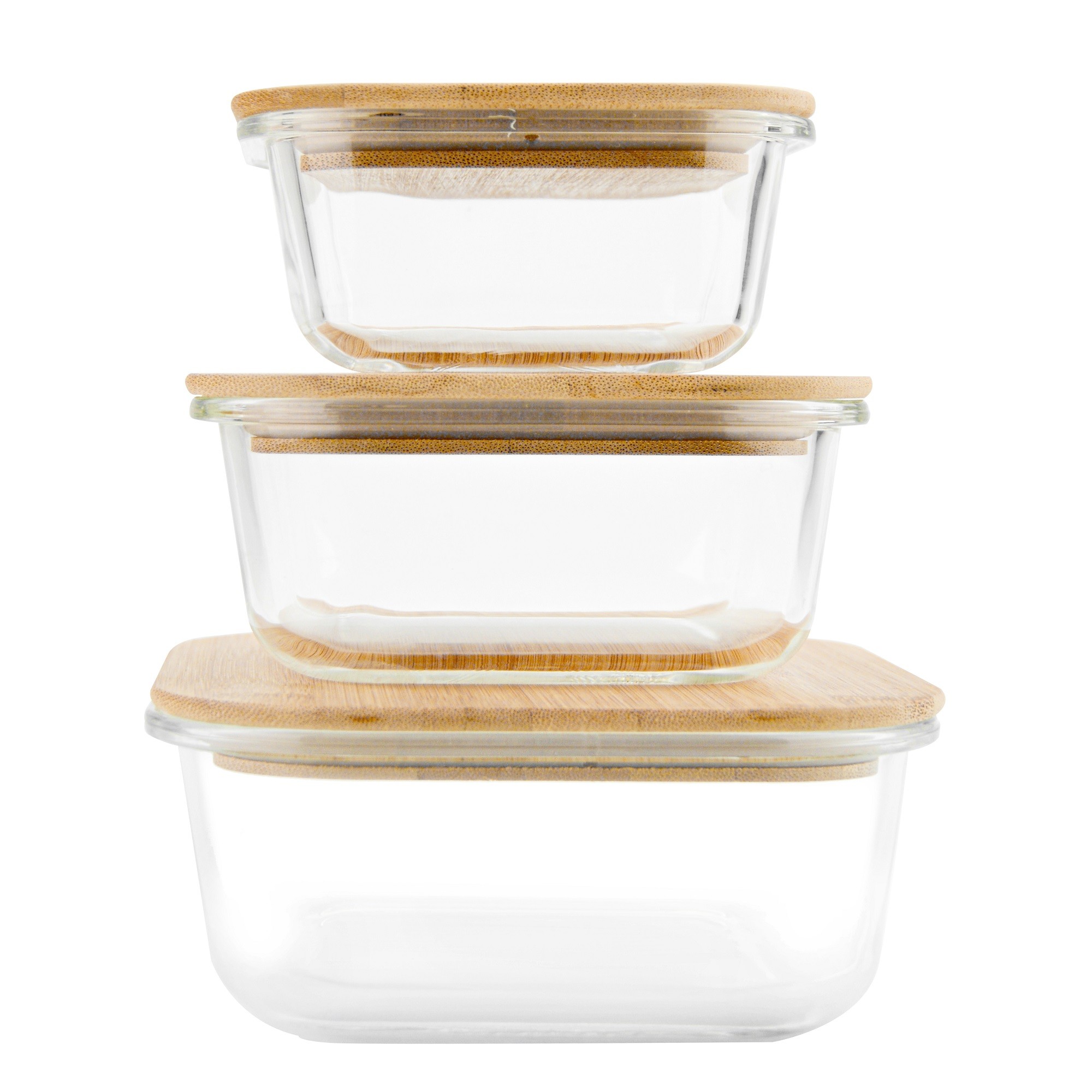 SET DI 3 RECIPIENTI DI VETRO BOROSILICO CON TAPPO DI BAMBÙ