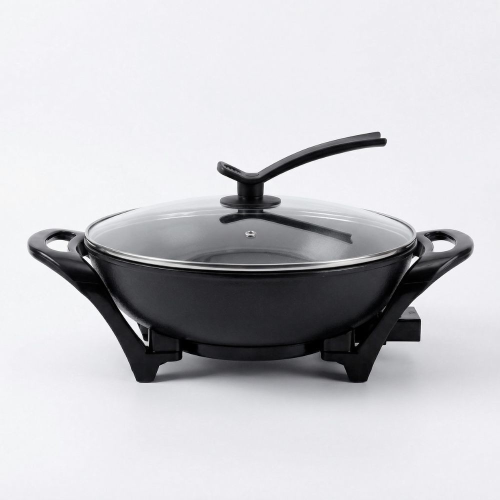Questo Wok elettrico con coperchio in vetro È un'alternativa pratica alle stufe tradizionali. È perfetto per: