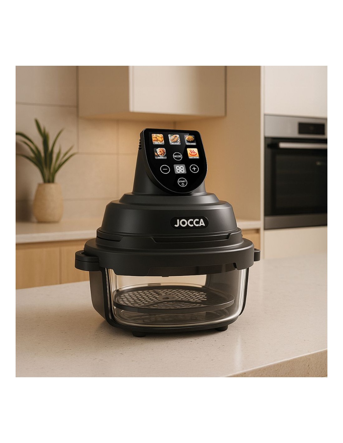Cucina in modo sano con questo Friggitrice d'aria digitale Jocca con contenitori Vetro borosilicato. Controllare la cottura in tempo reale e goditi risultati croccanti senza grassi in eccesso.