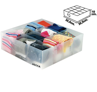 Con questo Organizzatore di casse Jocca spa_latn avere perfettamente ordinato il vestito nei tuoi letti. Questo organizzatore di cassonetti Jocca, è adatto per la maggior parte dei casi in quanto le sue misure sono universali e possono essere ritagliati e piegati nessun problema. Questo organizzatore di cassonetti Jocca si compone di 12 ossa e creerà l'ordine nel tuo armadio che tanto ami.
