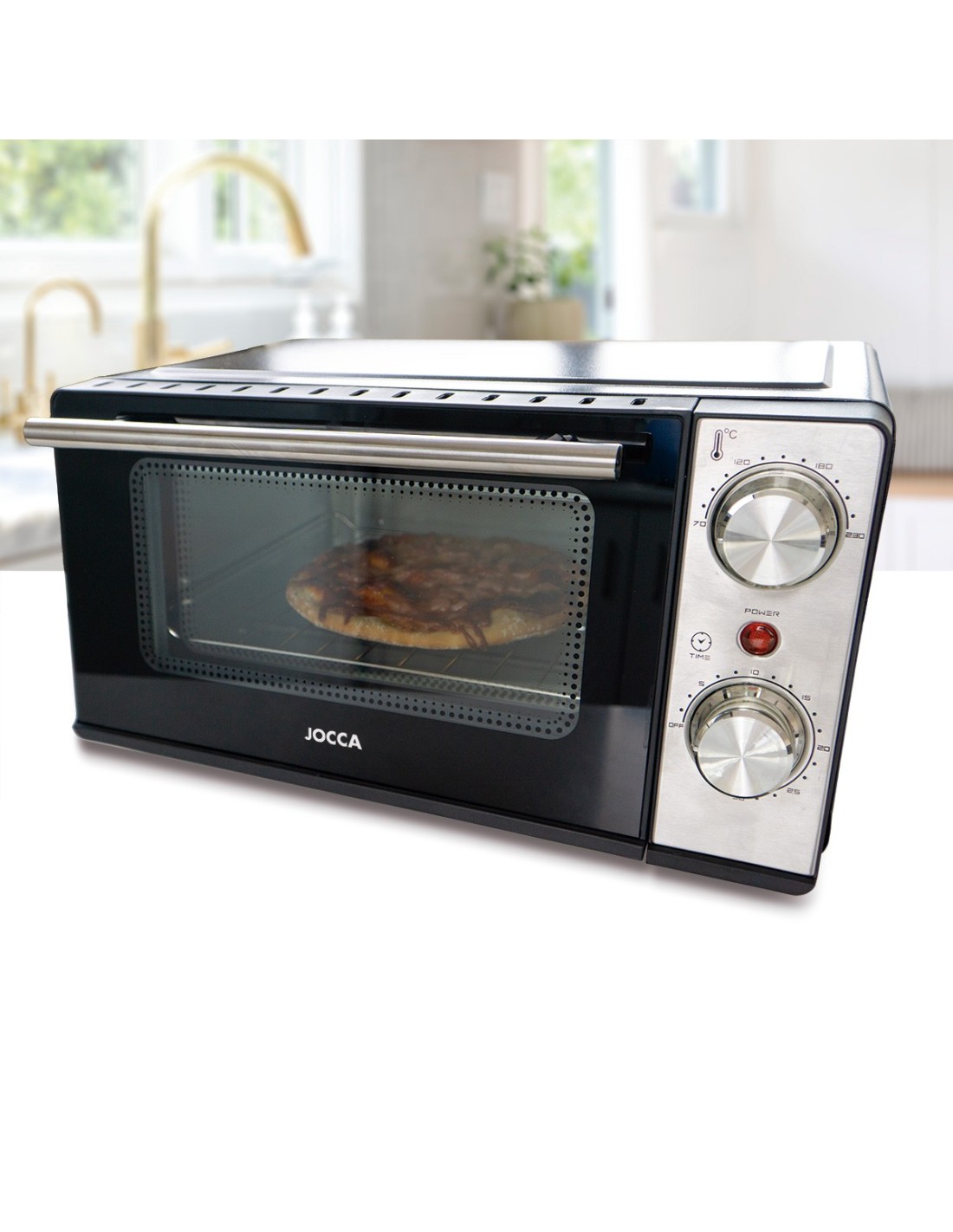 Bureaubladoven Jocca Van compact ontwerp, maar met een grote capaciteit van 11 liter en 650W-vermogen die in elk gebruik een hoge prestaties garandeert. Het heeft 30 minuten timer- en temperatuurregelaar tot 230 ° C om aan uw recepten en voedsel te passen.