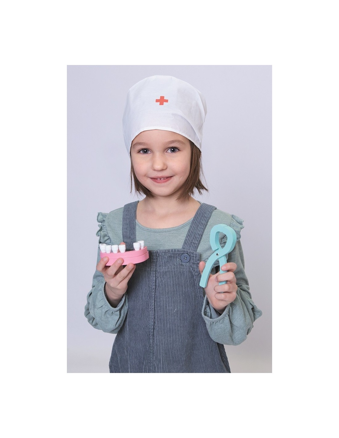 Tannlege: koffert, maske, cofia, plikter, sprøyte, speil, protese med flyttbare tenner