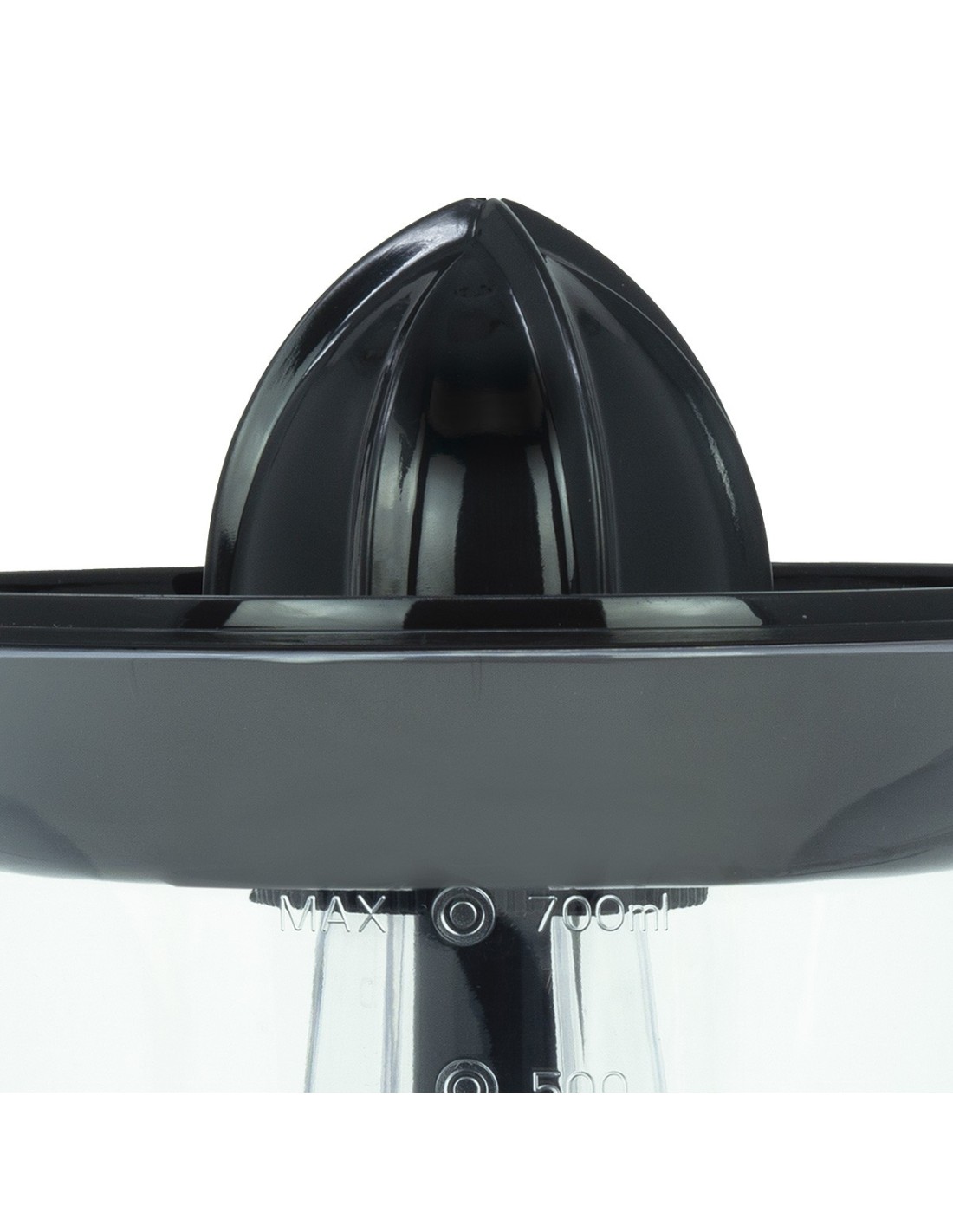 Takket være den funksjonelle designen vil du forberede juice enkelt og raskt, bare ved å trykke på frukten i keglen, slår juiceren på automatisk! Du vil få opptil 50% mer juice takket være keglens dobbelte sving. Inkluderer to kjegler for stor og mindre sitrus