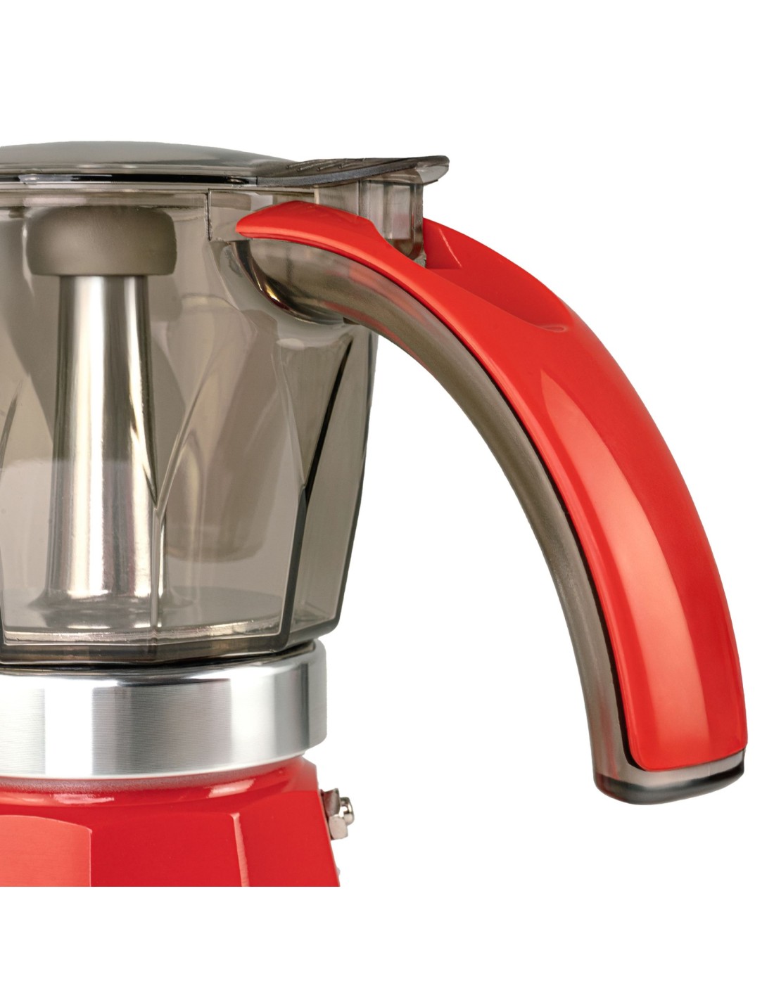 6-kopp elektrisk italiensk kaffetrakter, Perfekt for å forberede Moka stil kaffe raskt, trygt og komfortabelt. Designet for daglig bruk, kombinere praktisk, motstand og en attraktiv design som er tilgjengelig i rød eller svart.