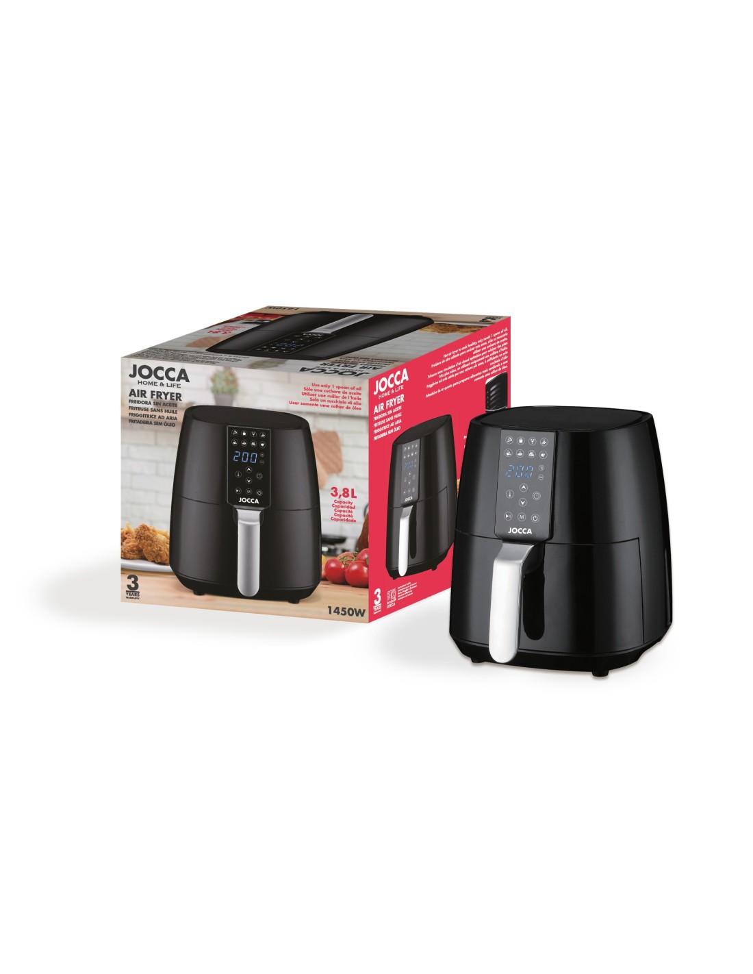 Descubra uma nova maneira de cozinhar mais saudável com o 3,8 litro Jocca Digital Air Fryer, ideal para preparar suas receitas favoritas com muito pouco ou mesmo sem óleo. Graças à sua tecnologia Circulação de ar quente, você terá comida crocante do lado de fora e no interior, com Até 85% menos gordura Que uma fritadeira tradicional.