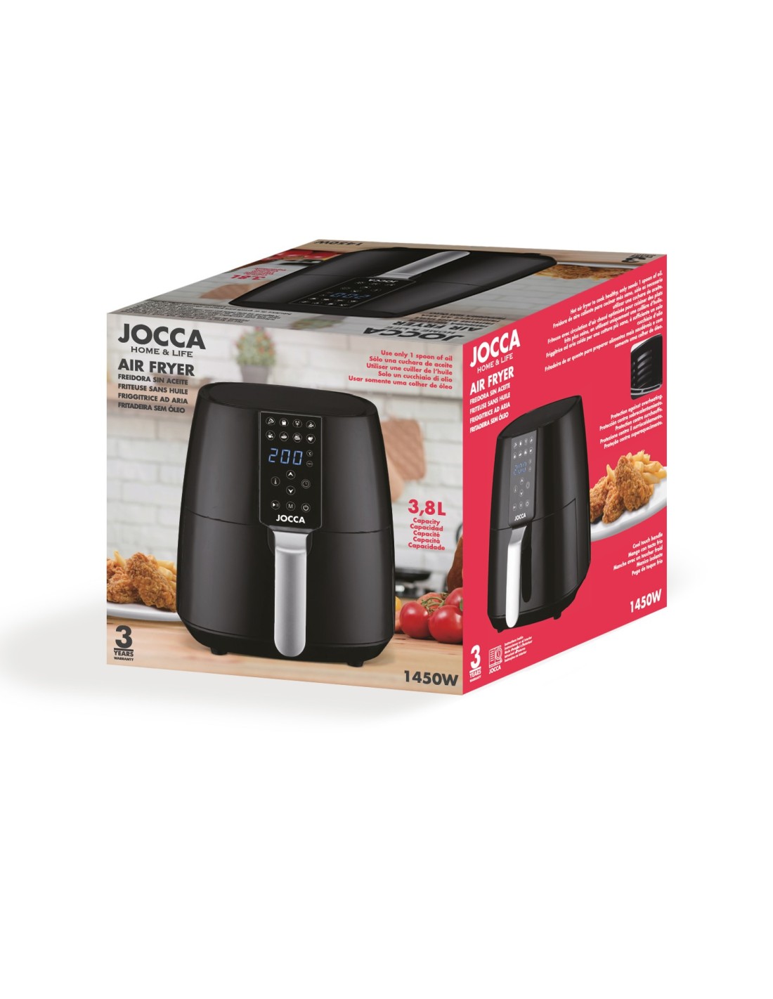 Fritadeira de ar digital Jocca 3.8L com 8 programas e tela de toque para cozinhar mais saudável e sem óleo.