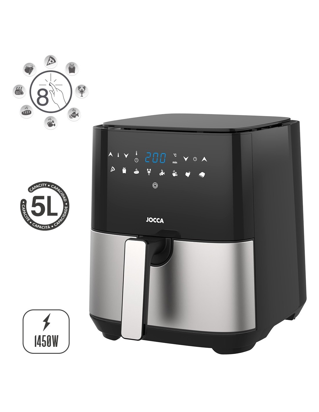 La fritadeira sem óleo 5L Jocca é capaz de cozinhar o infinito de receitas, saudável e delicioso, que vai virar cada refeição e cada jantar nos momentos mais esperados do dia. É perfeito para cozinhar de forma mais saudável e econômica, é só necessário usar uma colher de óleo.