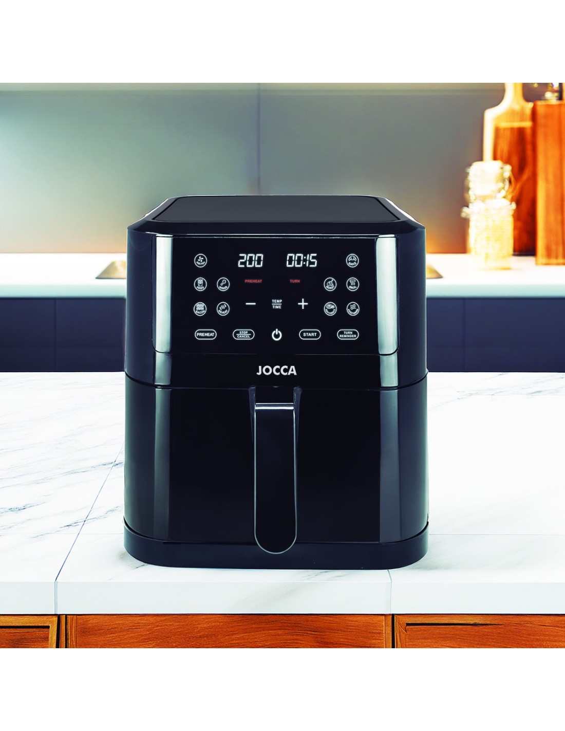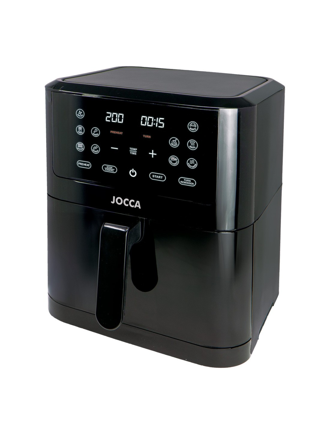 Com o fritadeira sem óleo 8L Jocca você pode cozinhar usando menos óleo e mais saudável: você pode adicionar apenas um pouco ou mesmo nada e desfrutar de sua comida com menos gordura e em poucos minutos. Não desistas das batatas fritas! Você pode fritar, assar, barracas, calor e descongelar todos os tipos de alimentos de forma saudável e rápida.