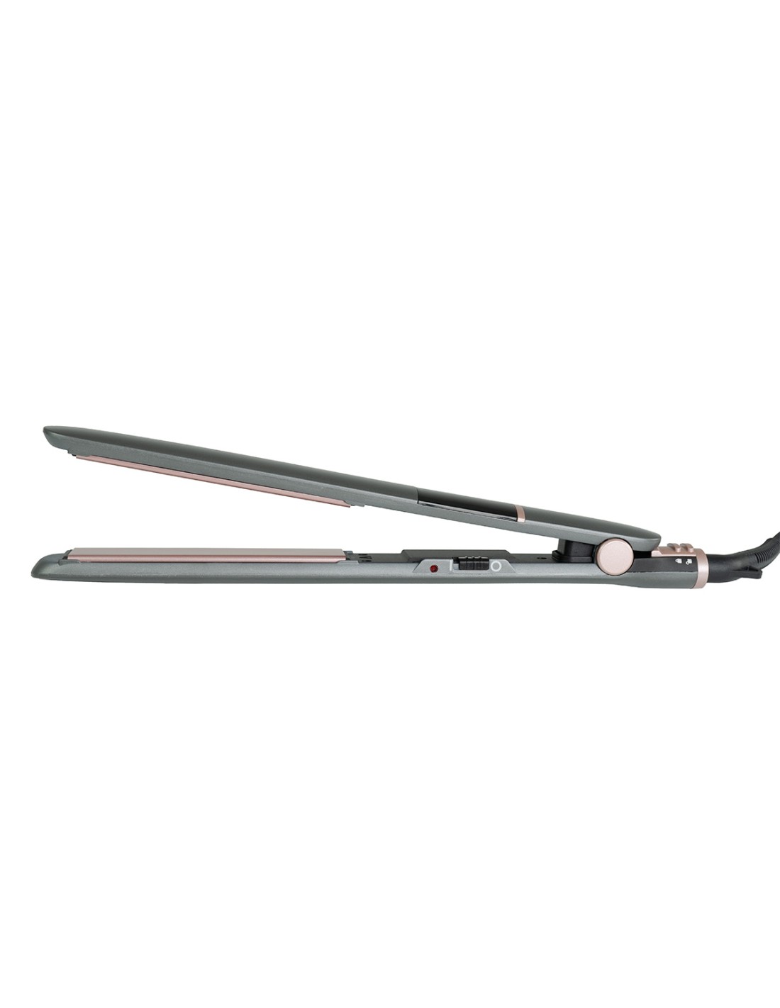 - Placas cerâmicas extra-flutuantes (25x120 mm): Sua grande superfície melhora o deslizamento, reduz o crimpamento e permite suavizar mais cabelo em menos passado. Placas flutuantes se adaptam ao movimento para evitar puxar e melhor distribuir o calor.