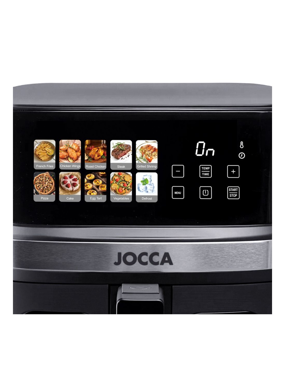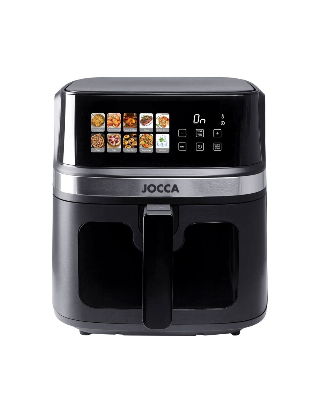A 8L fritadeira Jocca Redefinir a maneira de cozinhar em casa graças à sua poderosa tecnologia de ar quente e seu sistema de duplo força, que permite uma cozinha mais rápida, homogênea e eficiente. Projetado para aqueles que procuram uma fritadeira sem óleo de alto desempenho, esse modelo combina energia, capacidade e facilidade de uso em um único aparelho.