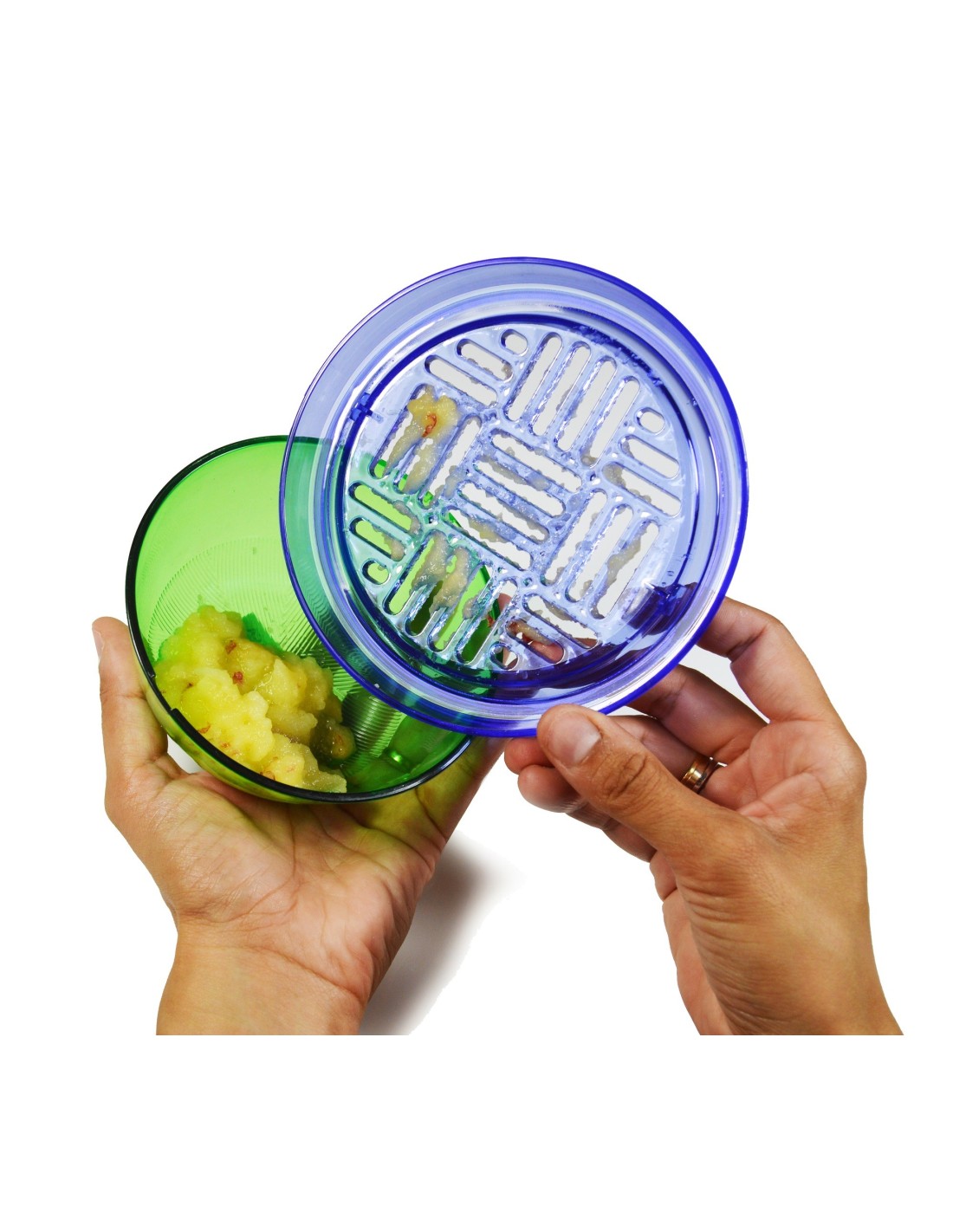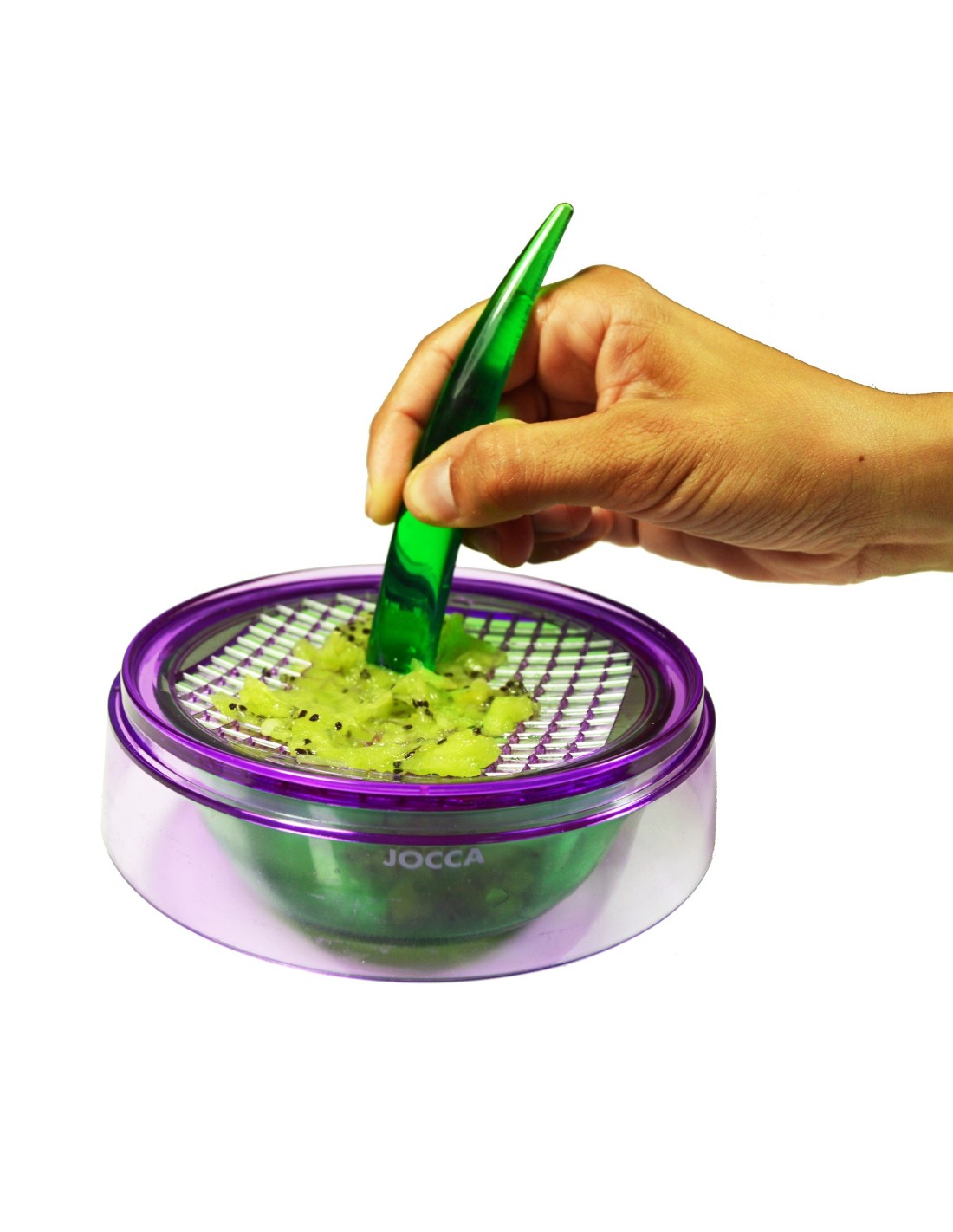 Mortero, cortador en malla, exprimidor, cortador de manzanas, rallador, utensilio para coger aperitivos, bol. Todas estas funciones en un único utensilio para tu hogar.