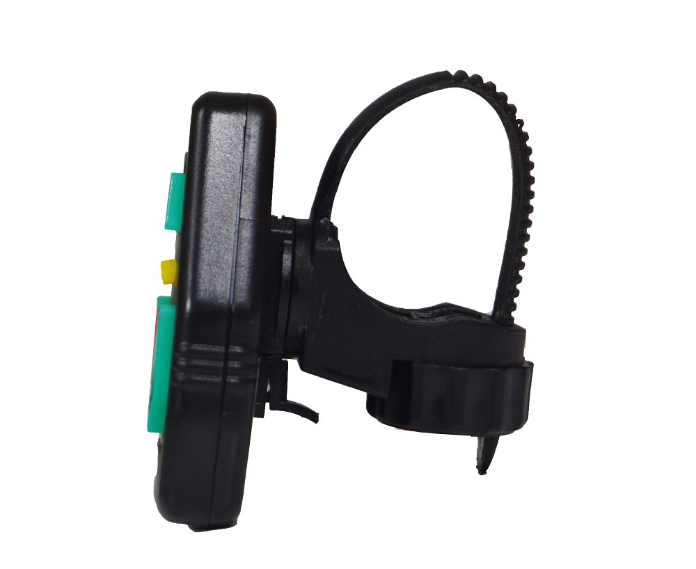 Funciona com controle remoto, que se pode colocar no guidão da bicicleta