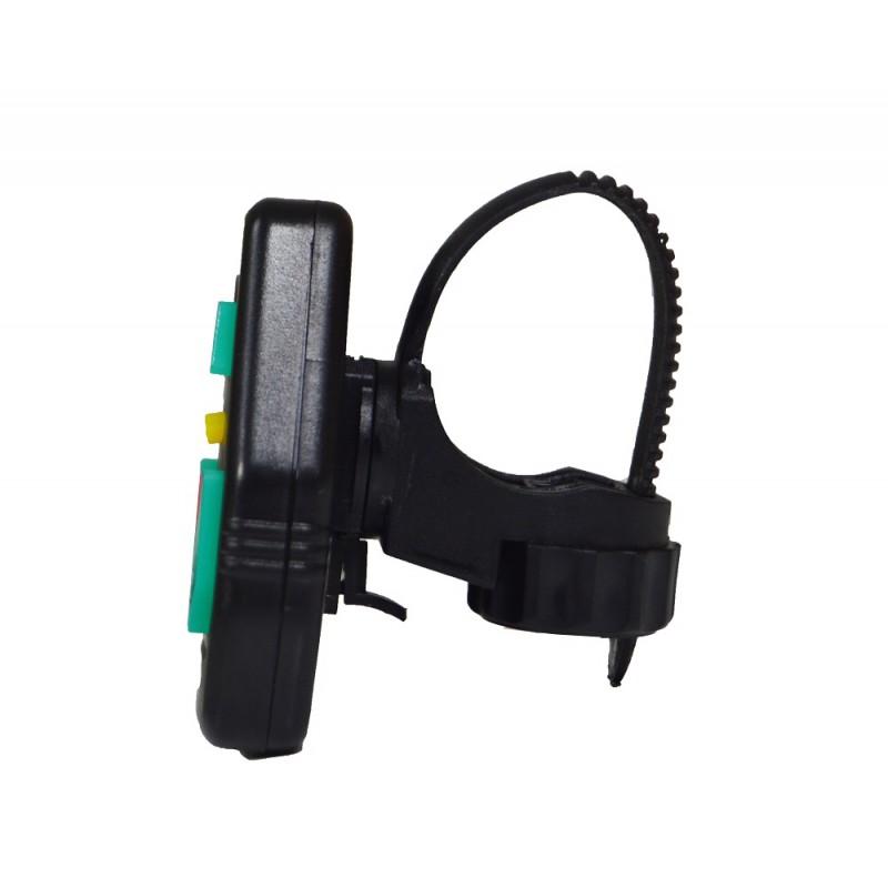 Funciona com controle remoto, que se pode colocar no guidão da bicicleta