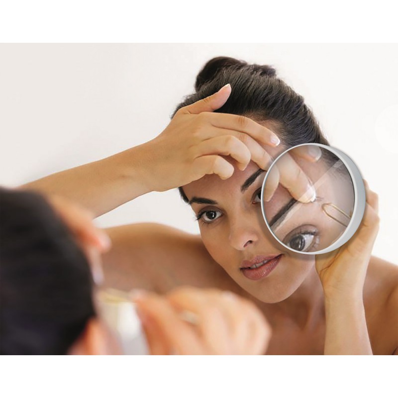 Espelho Jocca com lente de ampliação para melhor visualização que o torna ideal para cuidados faciais.