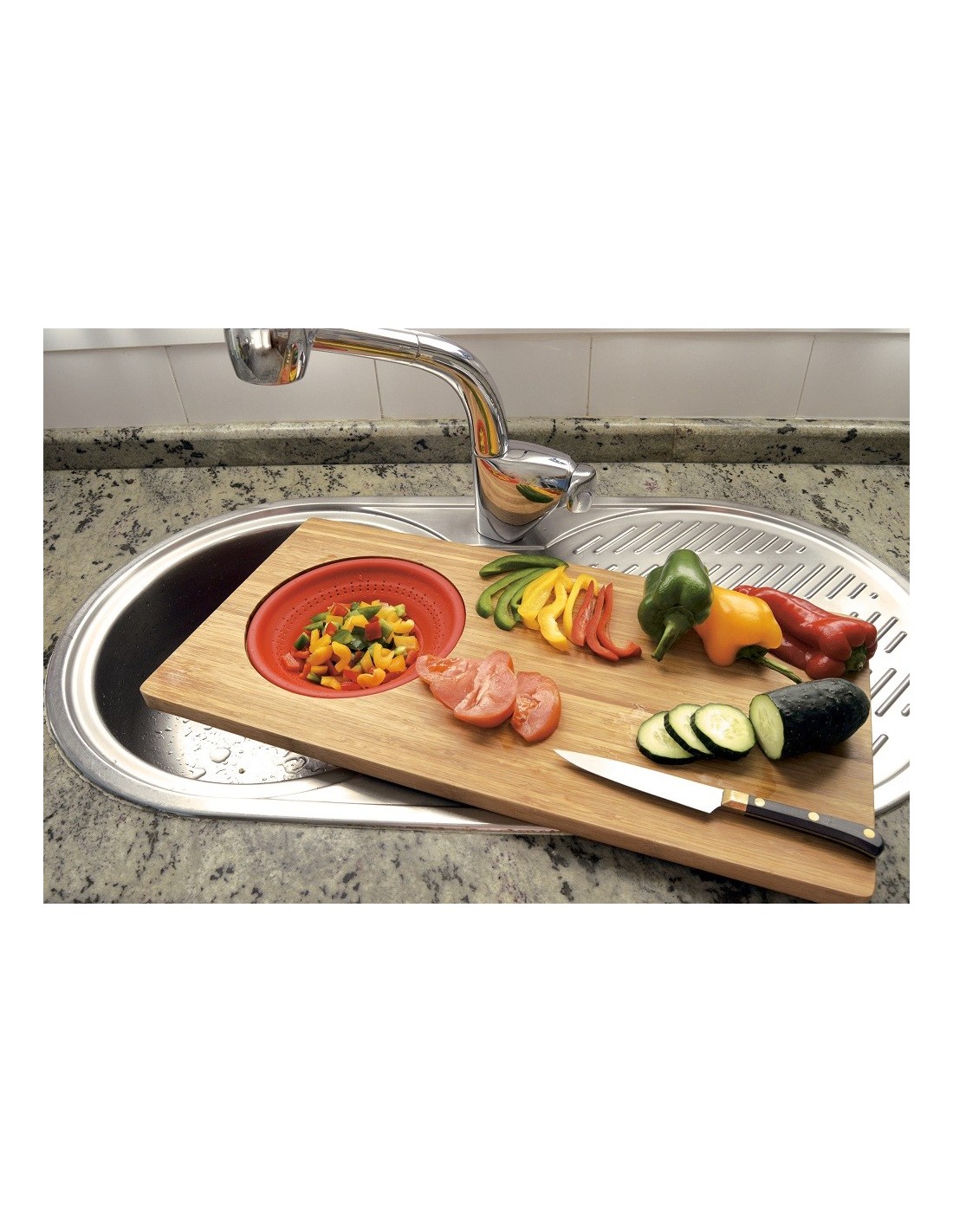BordJoccaA făcut 100% bambusCu raclee pentru chiuveta ceva indispensabil în bucătăria ta! 0bordJoccapentru a plasa pe partea de sus a chiuveteiVă va permite să tăiați curat și comandat, în acest fel vă puteți tăia fructele, legumele și legumele și să le spălați fără a fi nevoie să le mutați de la o parte la alta.Nu vă păstrați bucătăria.