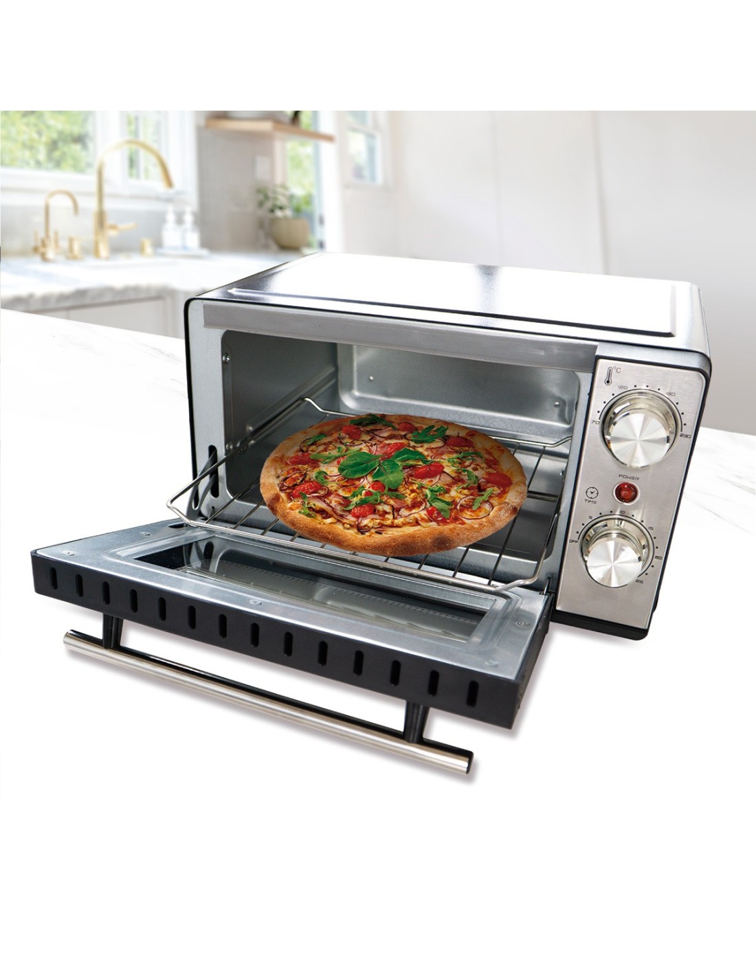 Cuptorul de masăJoccaEste însoțită de o tavă de coacere, o rețea de sârmă și o clemă de tavă. De asemenea, are o ușă de sticlă de înaltă rezistență care ajută la întreținerea temperaturii. Elementele sale de încălzire din oțel inoxidabil sunt responsabile pentru orice altceva în siguranță.