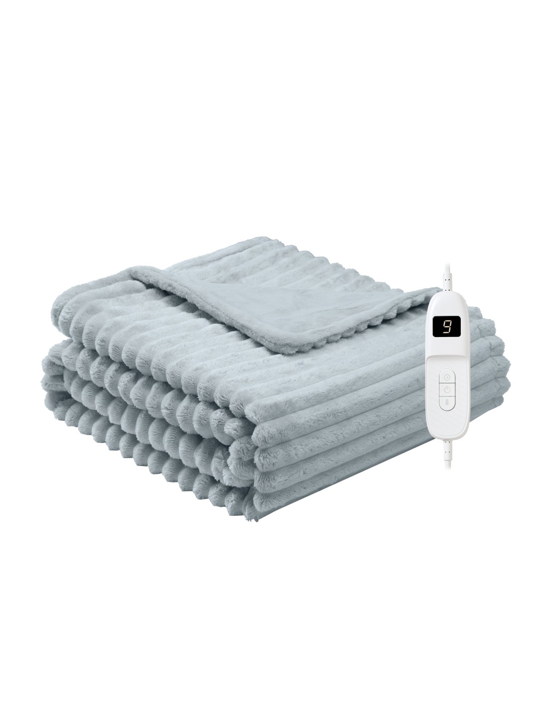 Pătură electrică cu flanel dungat, moale, confortabilă și față-verso.