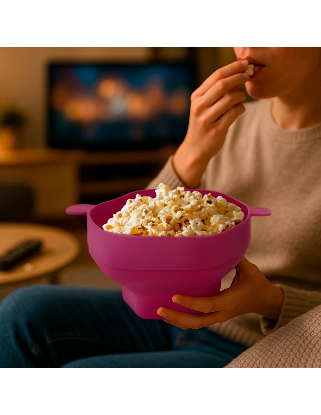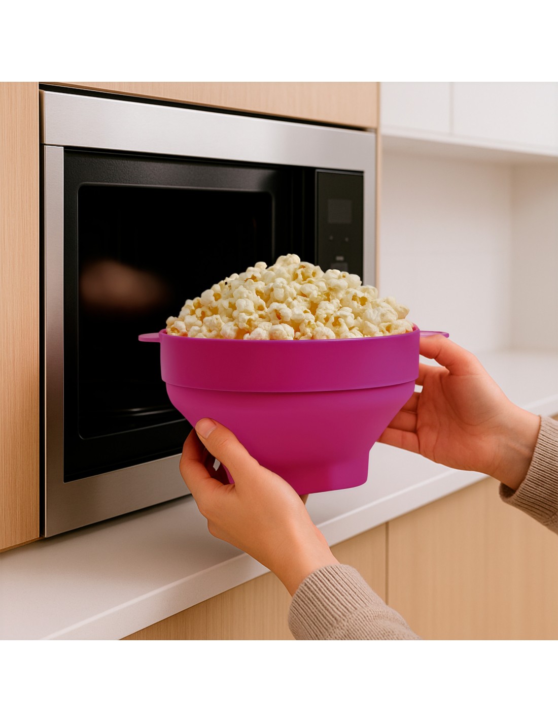Cu Popcorn de silicon Jocca, Veți avea o opțiune practică, sănătoasă și ecologică pentru nopțile dvs. de film, adunări de familie sau gustări improvizate.