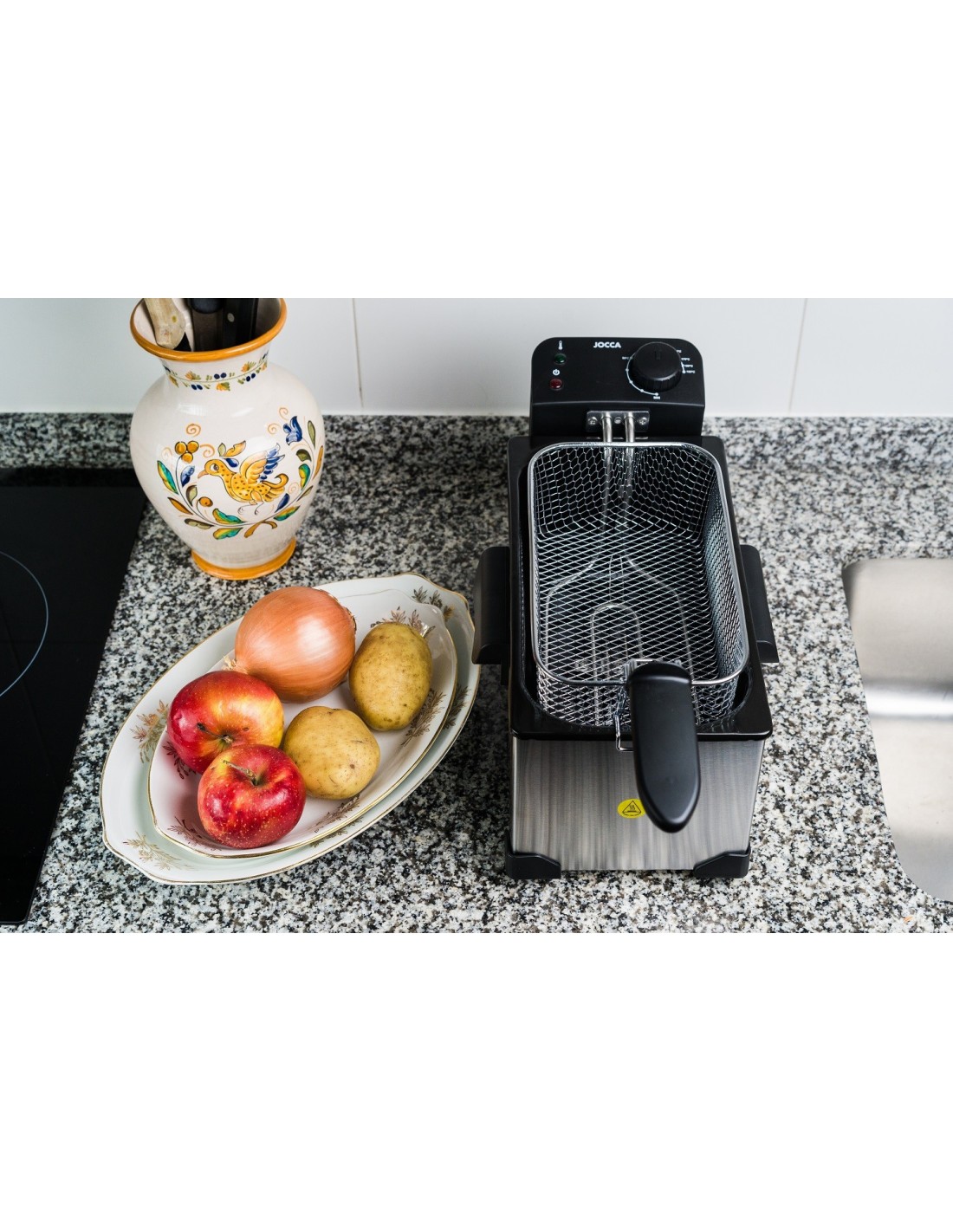 În JOCCA avem o frigider de mare capacitate nu mai ai nici o scuză pentru nişte cartofi prăjiţi, crăpători, în scurt timp! Acest frigider cu ulei fierbinte are 3 litri de capacitate, prin urmare, podrás pregătiți o mulțime de mâncare o dată pentru capacitatea lor mare. Are un termostat pentru a putea reglarea temperaturii, de la 90o la 190o şi indicatoare de funcţionare lumini pentru a vă face mai ușor atunci când merge. Are un capac din oțel inoxidabil cu un mâner pentru a preveni arsurile, în plus are un coș cu mâner anti-arsuri și un mâner pentru a pune mâncarea și a favoriza scurgerea acesteia. Vezi tu, cel mai important lucru este tu securitate. Nu . Există, de asemenea, o găleată removabilă, care vă va permite să curat uşor. Nu . Deşi are o capacitate mare, acest frigider de ulei este foarte compact, astfel încât nu va ocupa prea mult spaţiu în tine, pe lângă faptul că este un electrocasnic foarte discret şi nu va atrage prea multă atenţie în tine, fiind alte metale şi argintiu, adică argintiu.