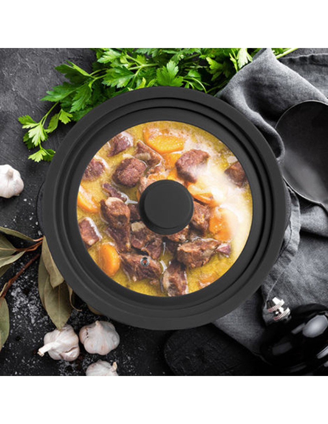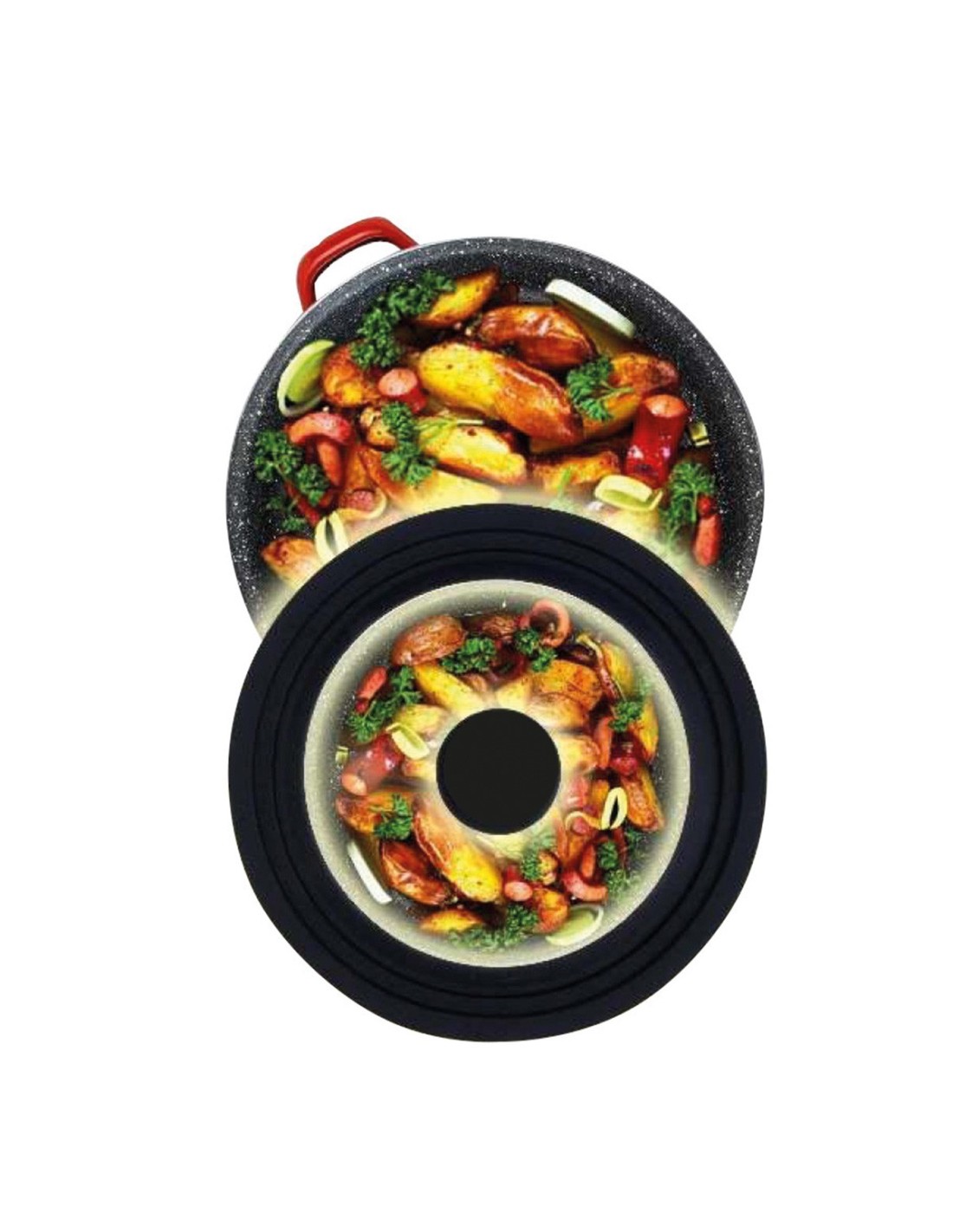 Stekleni pokrov s silikonomJoccaTo je kot nalašč za uporabo z različnimi velikosti lončkov, saj je primerna za velikosti 24, 26 in 28 cm v premeru. Vaš ročaj in silikonski zaključek so namenjeni enostavni uporabi in hitrem čiščenju.