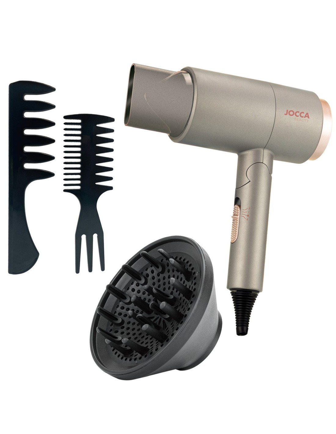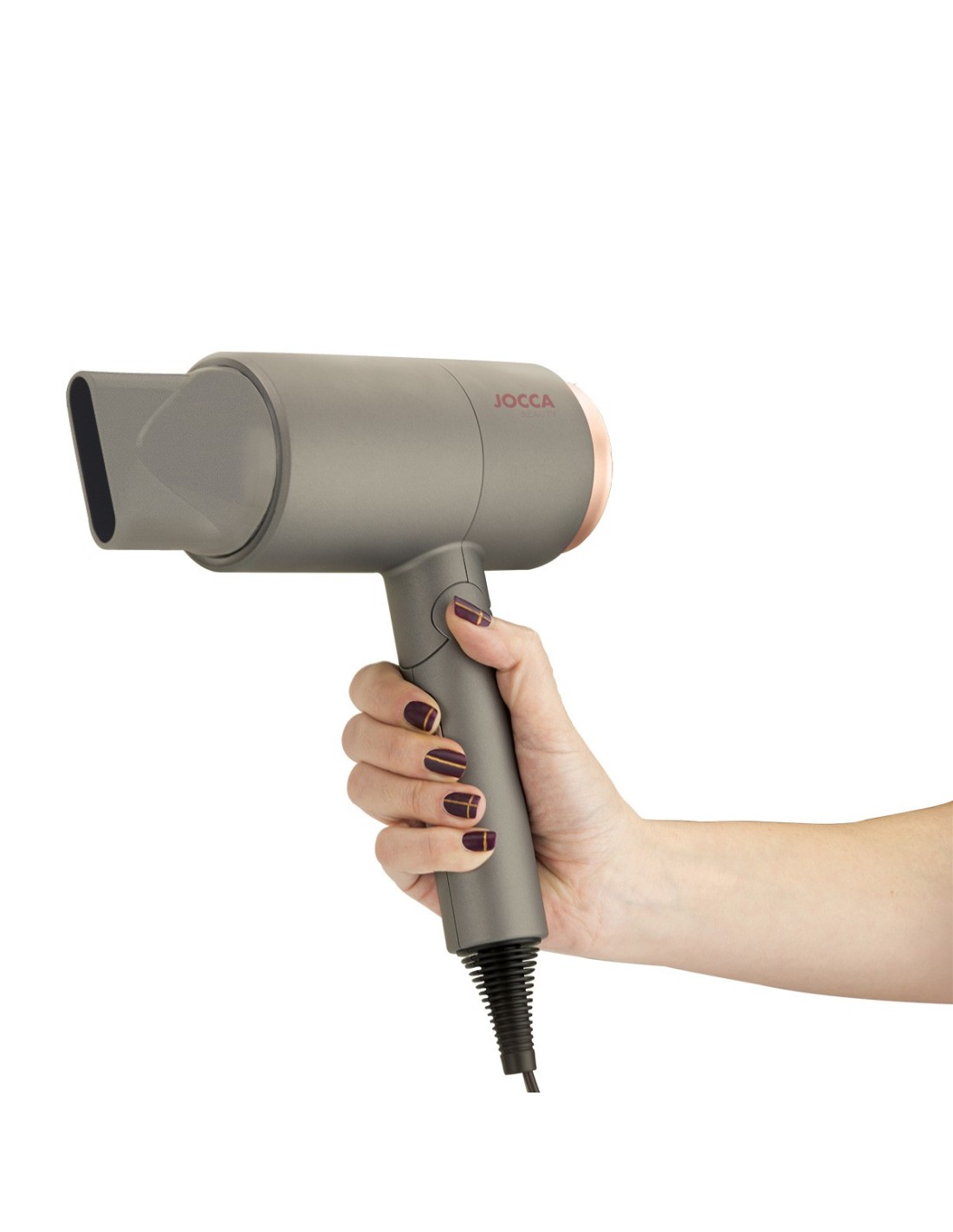 Sušilnik za laseJoccaIma močan motor do 2000W in sodobno in kompaktno oblikovanje učinkovitih in hitrih sušenje sej, kjer potrebujete! Zahvaljujoč svoji zložljivi ročici ga lahko udobno transportirate in shranite, da zaseda minimalni prostor, ne da bi žrtvovali moč tradicionalnega sušilnika.